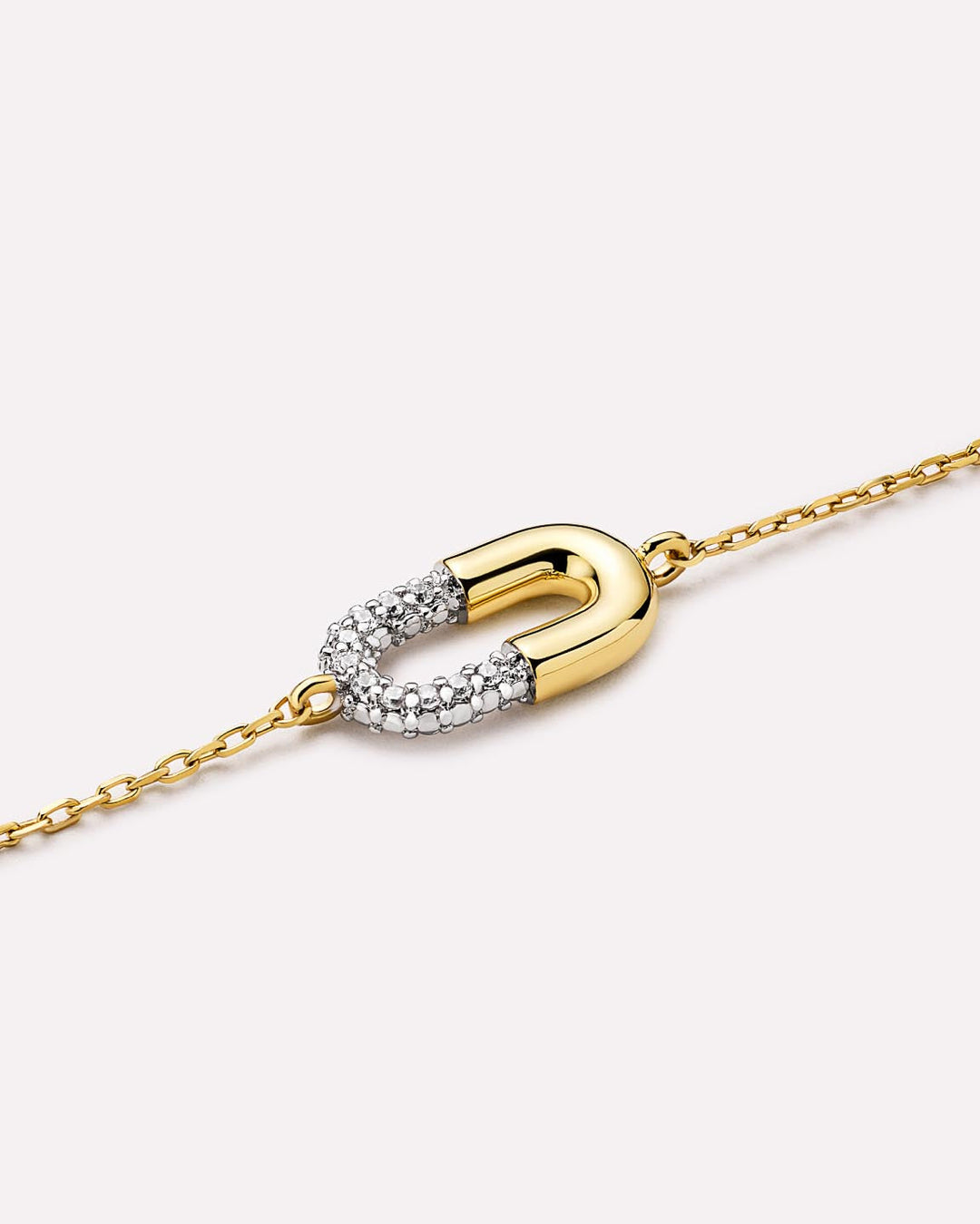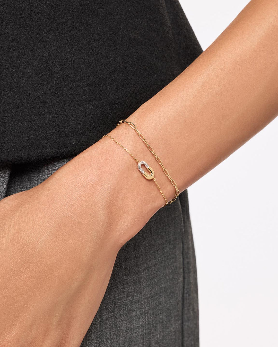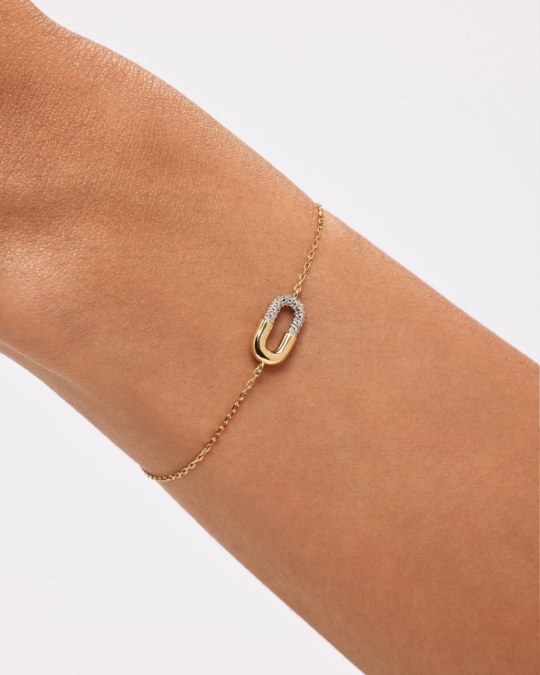 Petite yet bold, this gold charm bracelet is destined to stand out in any look. Plated in 14k gold and rhodium, this mixed-metal bracelet features a simple chain and a pavé pendant with sparkly cubic zirconia gemstones. Add an extra touch of texture by pairing this piece with our slim Poetry bracelet.