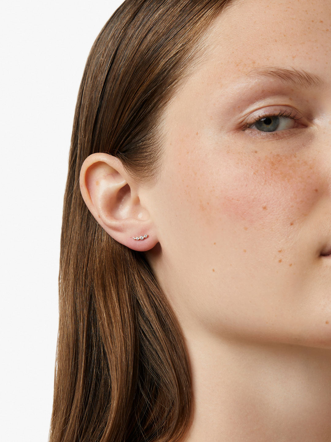 Climb your way to the top in these fabulous ear climber earrings crafted in recycled Sterling Silver and dipped in 14K gold for a luxe touch. These sparkly 14K gold-dipped earrings feature a row of four shimmering cubic zirconia gems to add a little extra shine when you catch the light. Wear these ear climber earrings alone or stacked with other earrings for a chic look.