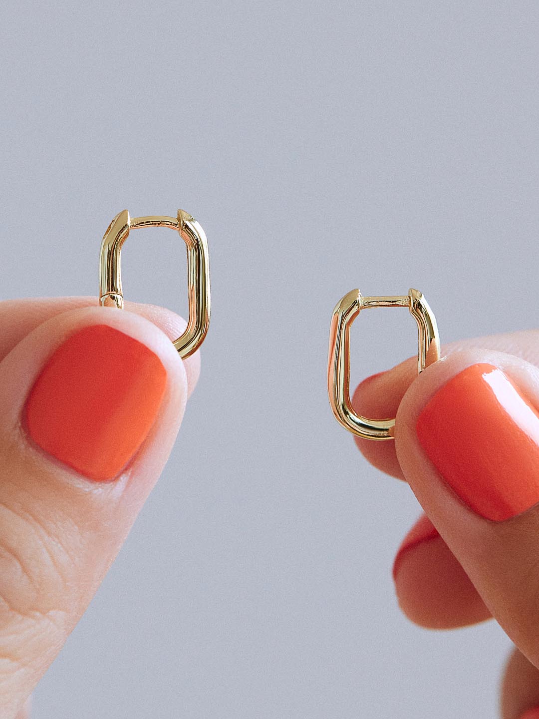 Perfect to wear alone or stacked, these minimal gold hoop earrings crafted in 100% recycled sterling silver and dipped in 14k gold are this season’s essentials. These hoop earrings are also available in a larger size. With a contemporary oval design, these gold hoop earrings are must-have jewelry pieces. Pair them with a dainty gold necklace to create a balanced & chic look.