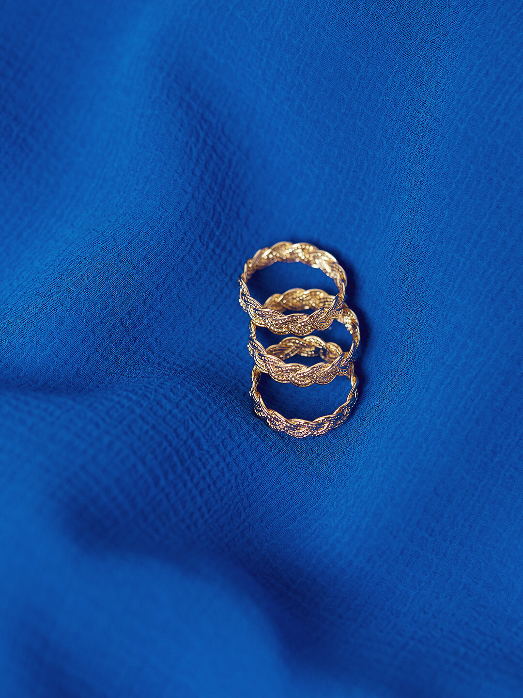 With a simple yet vintage-inspired interwoven look, this band ring is a forever-treasure jewelry piece. This understated band ring dipped in 14k gold is extremely versatile and will never go out of style. Wear this gold band ring alone for a chic look or stack it with other rings for a fresh contemporary look.
