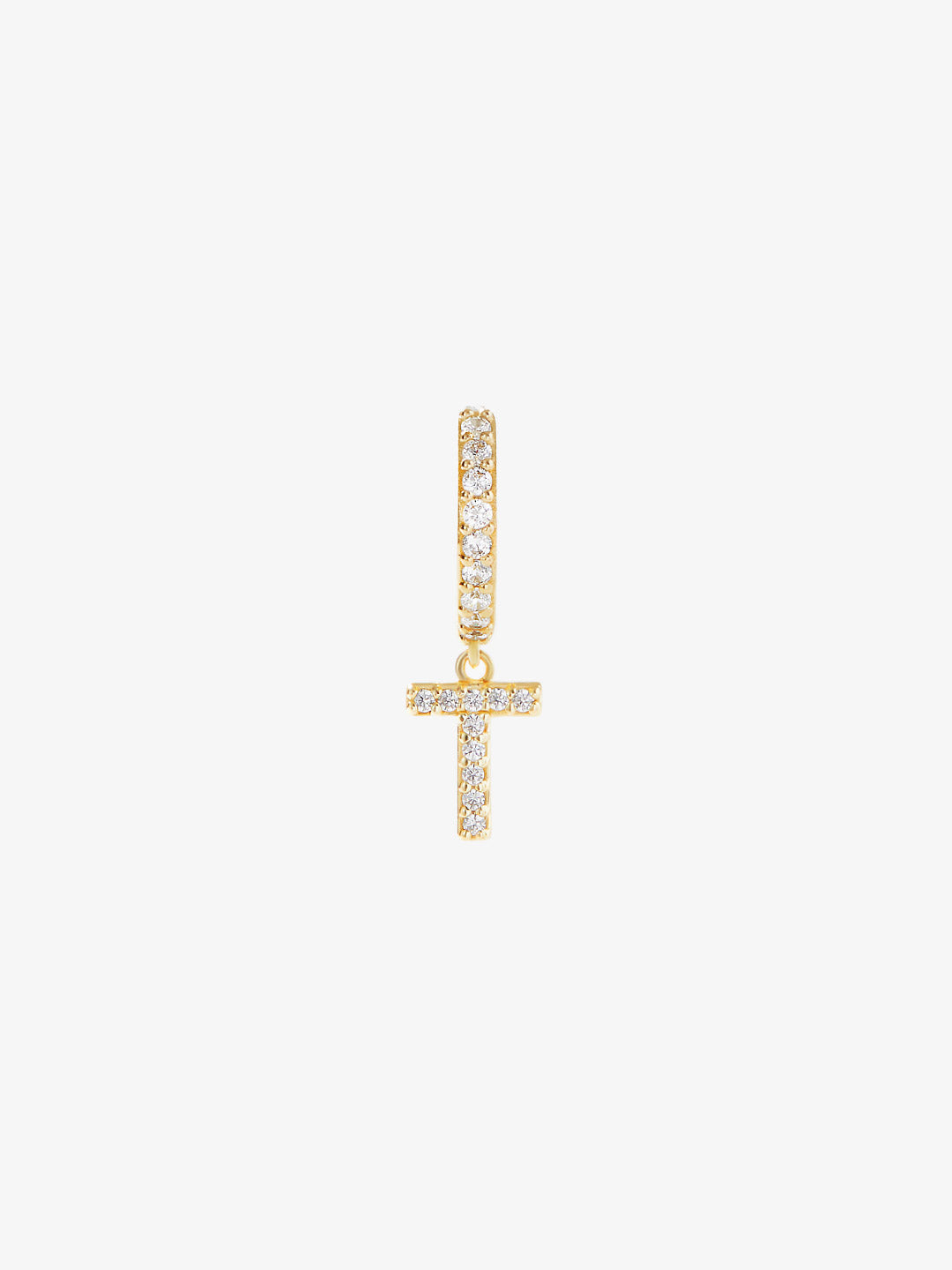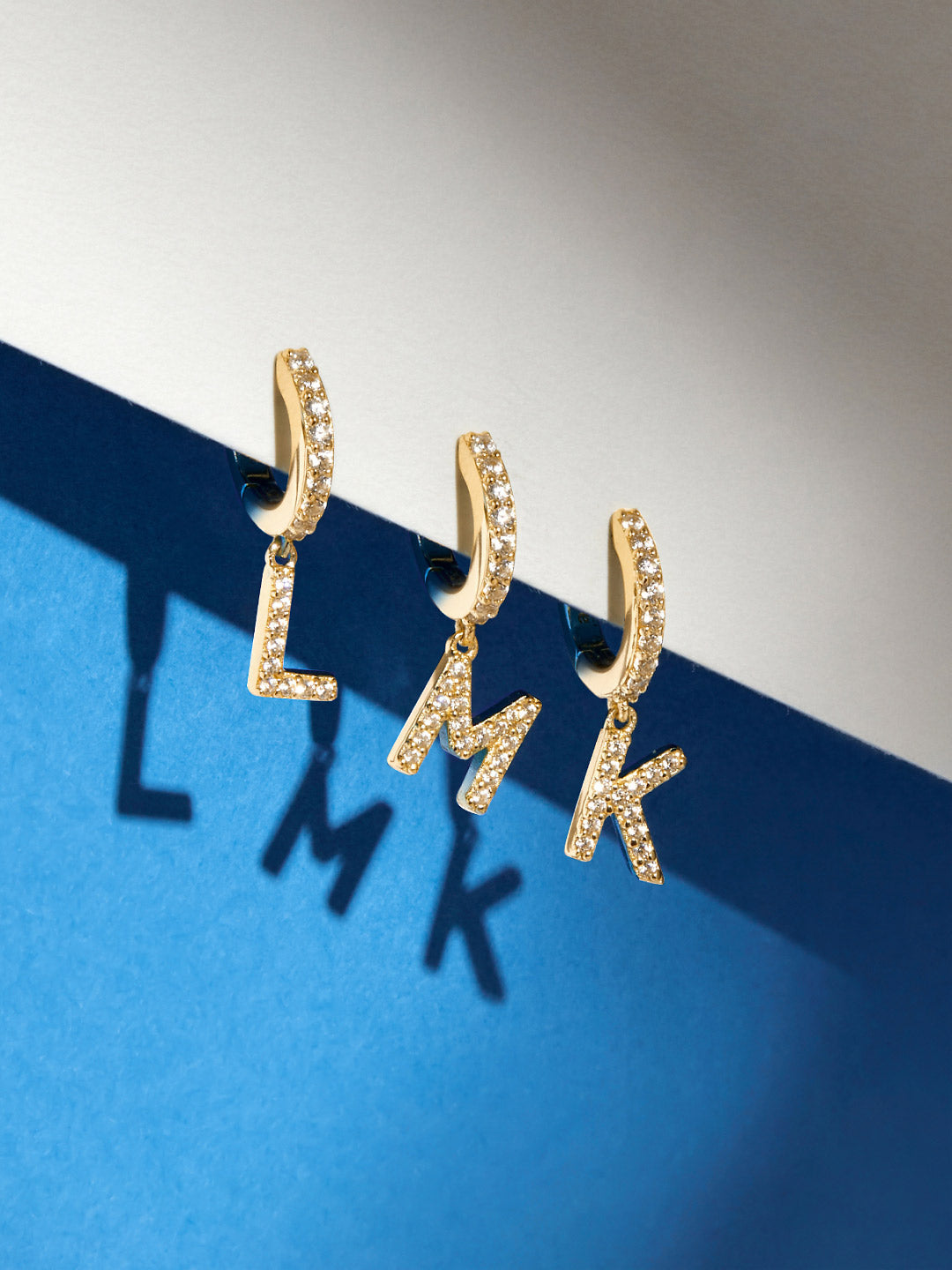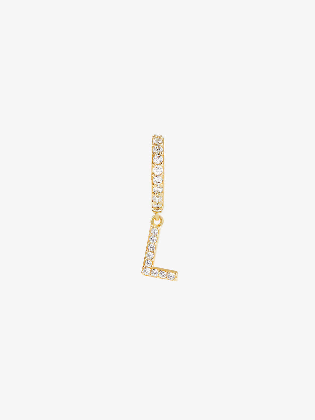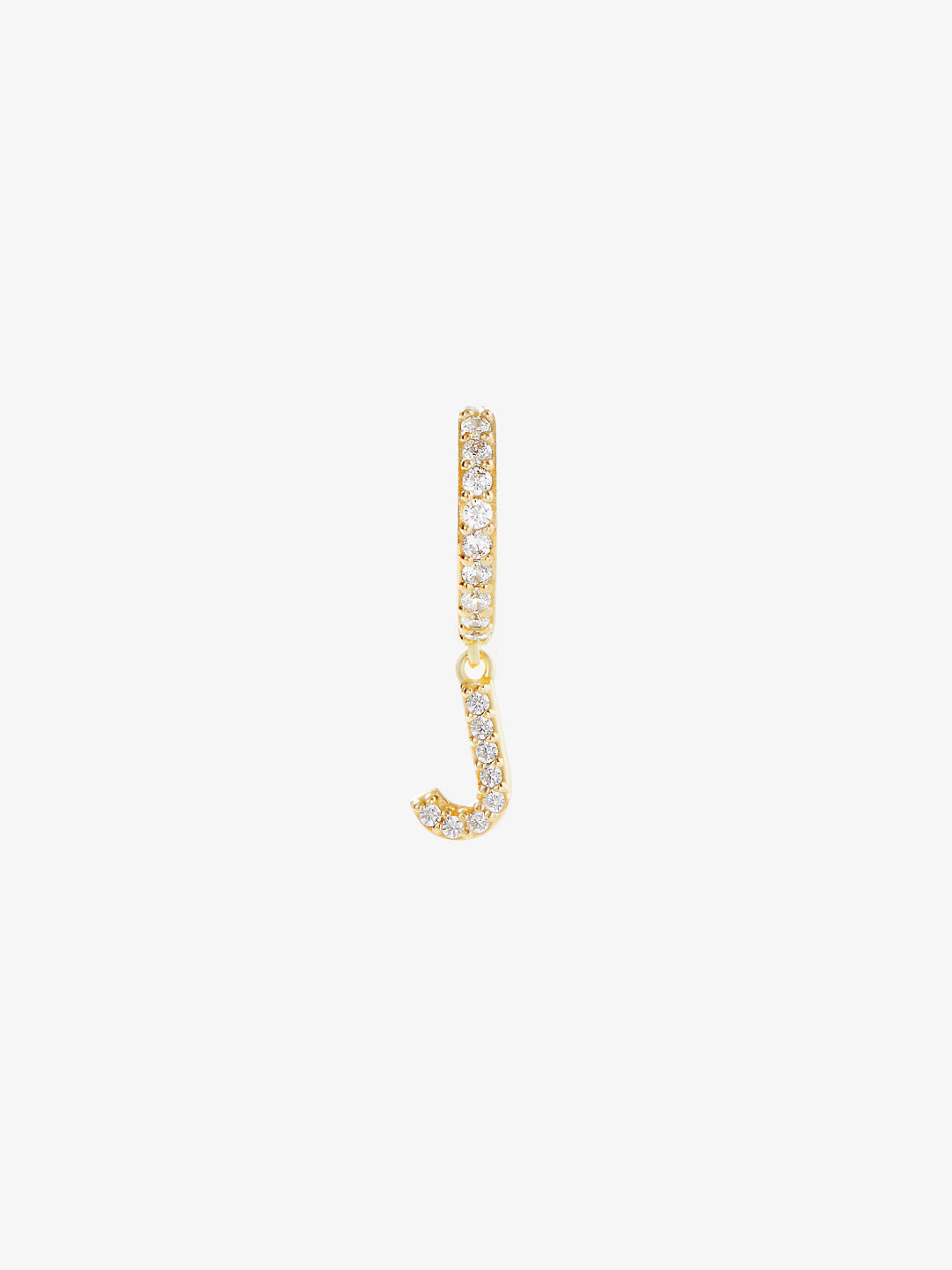 +Our letter hoop earring is the sweetest way to rep your best friend, partner, or even a family pet’s initial letter with your everyday outfit. This single charm earring is crafted in sterling silver, dipped in 14K gold, and adorned with shimmering cubic zirconia gemstones for an added touch of sparkle. Choose your favorite letter and wear this letter hoop earring every day to be reminded of the ones you love. Pair it with our Initial Charm Bracelet for an even more meaningful look.