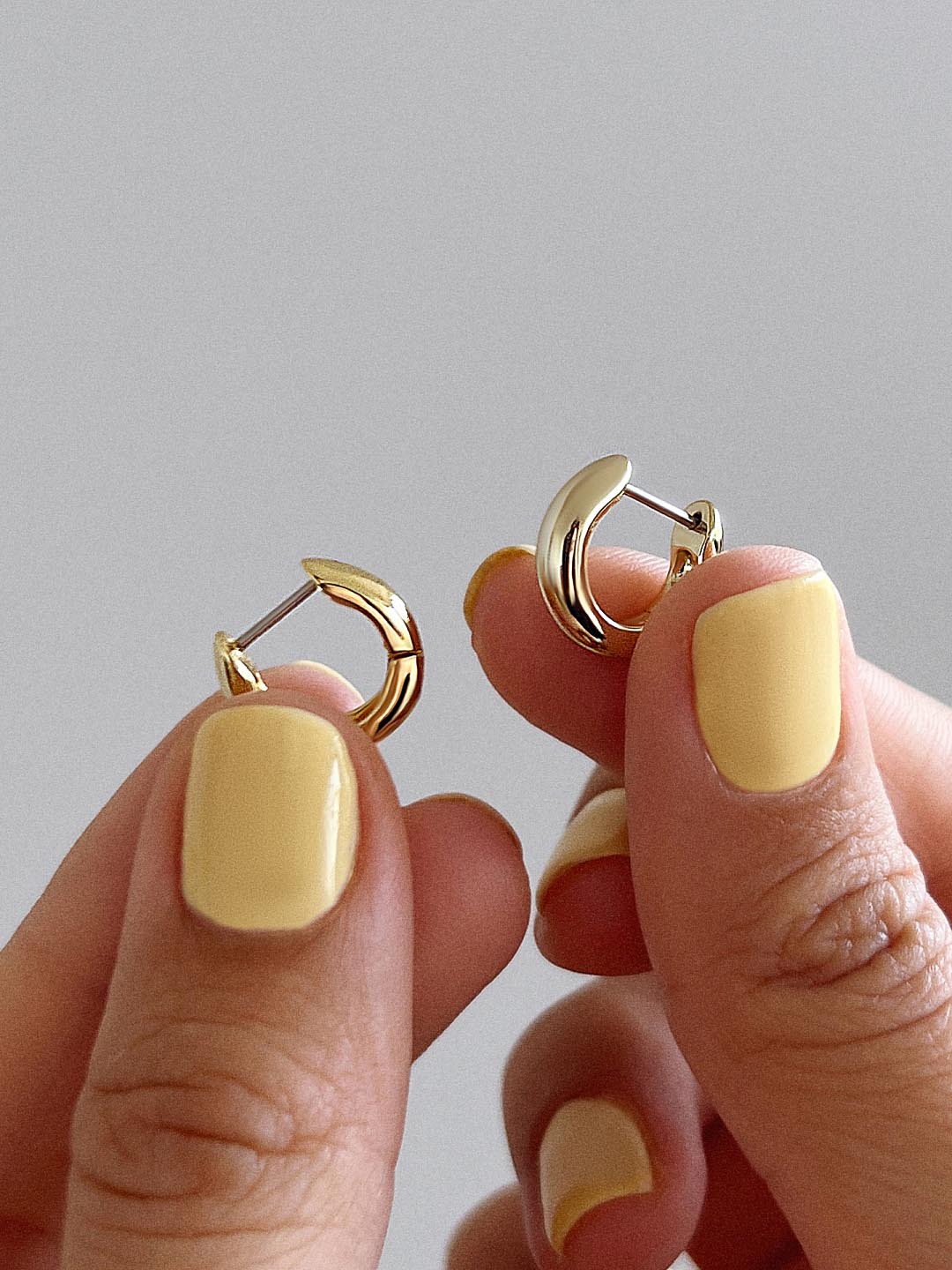 Delicate and understated, these bold huggie hoops are meant to be loved and worn every single day. Subtle enough to work with any outfit, yet bold enough to stand out, these thick gold huggies are dipped in 14k gold and feature hypoallergenic titanium posts. Wear these bold huggie hoops alone or stacked with other earrings for a fashionable layered look.