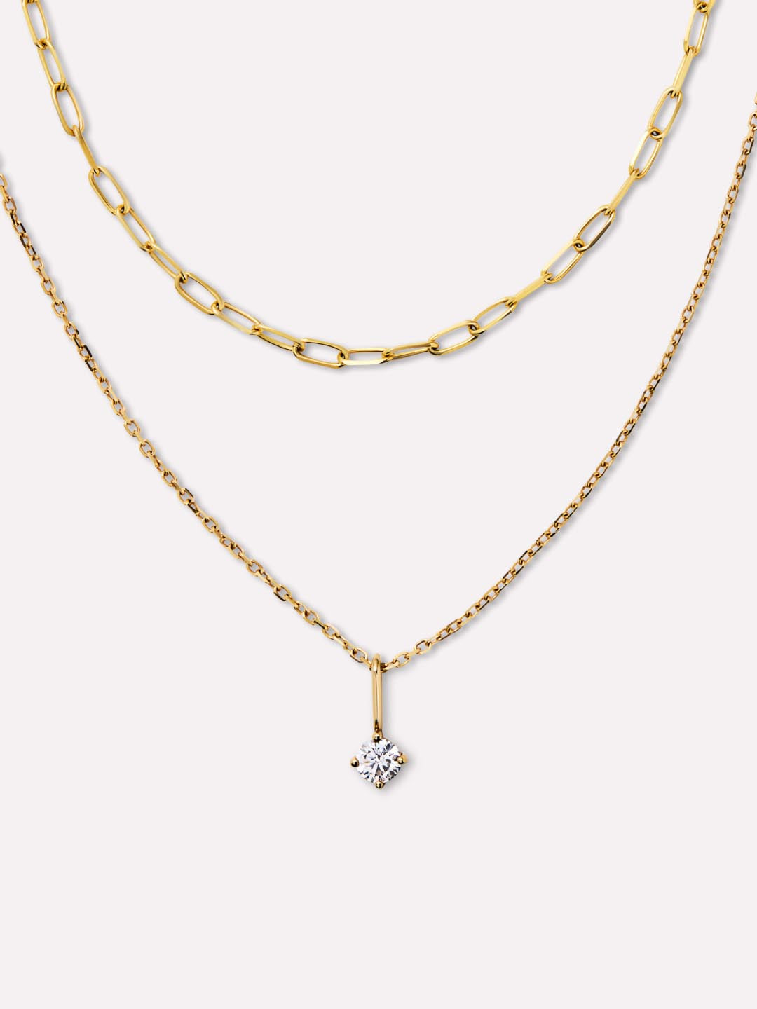 Your new favorite way to layer. This diamond necklace set is crafted in solid gold with a waterproof design that’s made to last a lifetime. Featuring a classic chain necklace and paperclip chain with a lab-grown diamond charm, this trio is a chic set you can wear everyday. Add our Gold Paperclip Bracelet to your wrist to complete your look.