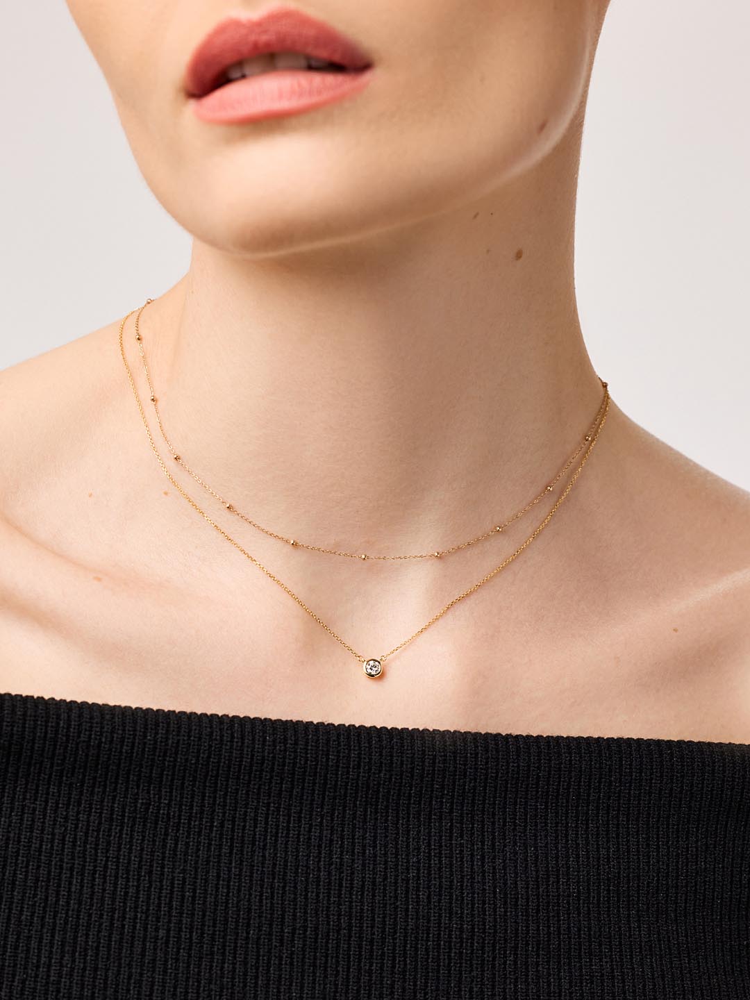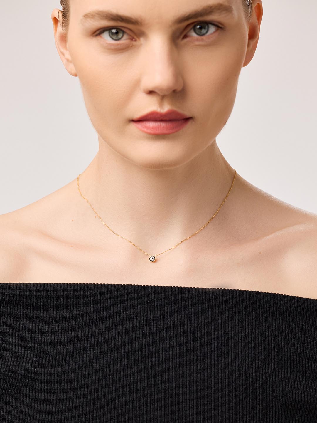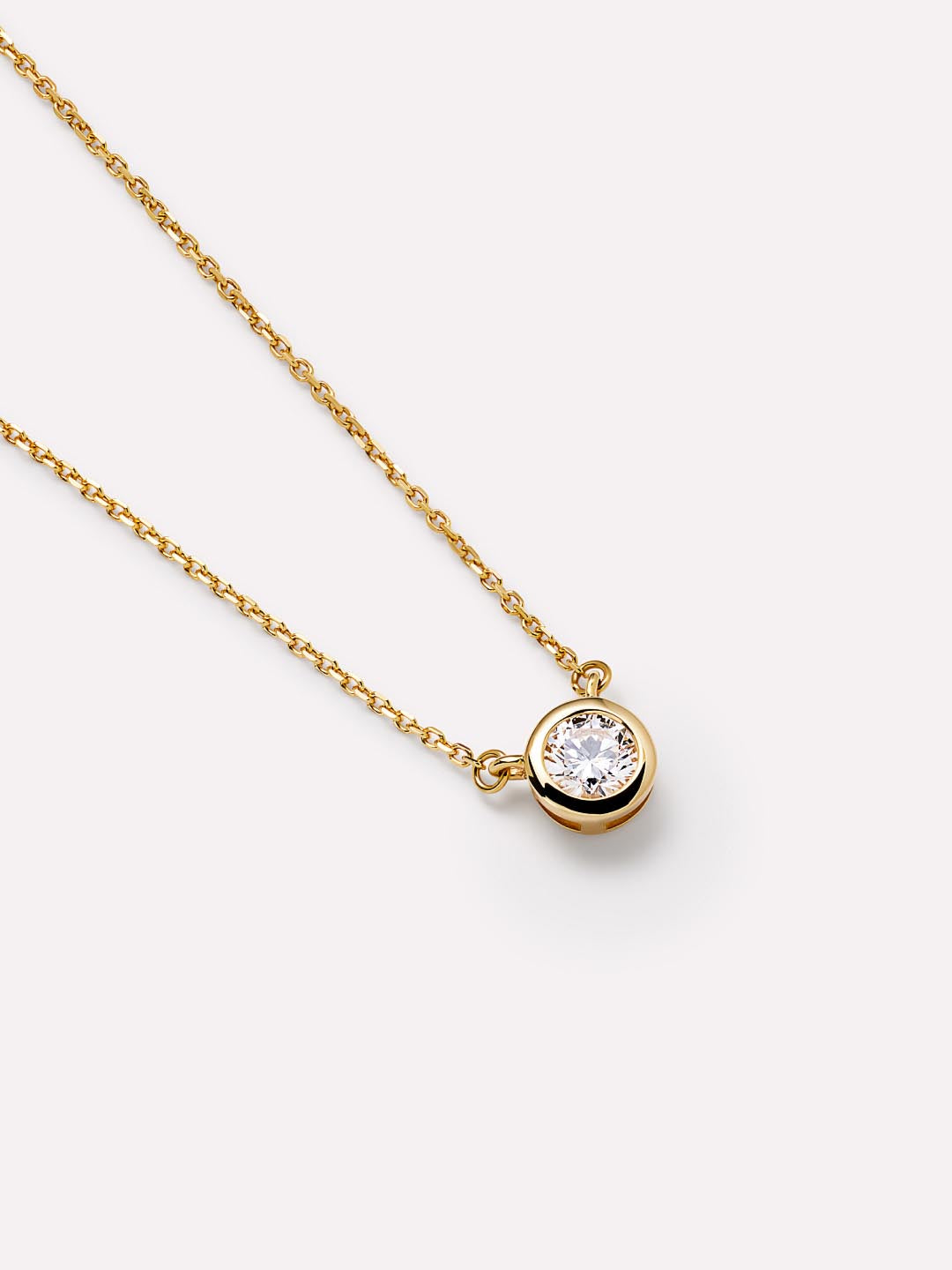 No jewelry collection is complete without a classic diamond necklace. Crafted in recycled solid gold, this necklace features a simple chain and round cut lab-grown diamond in a timeless bezel setting. Designed to be worn over and over again, this simple necklace can be styled on its own or with our Gold Signet Ring for a chic finishing touch.