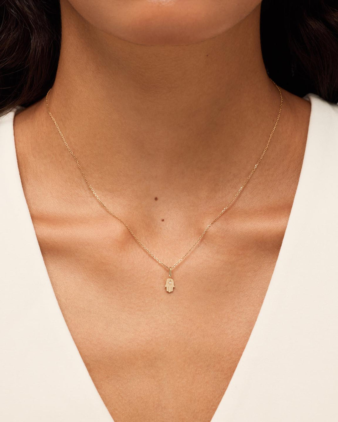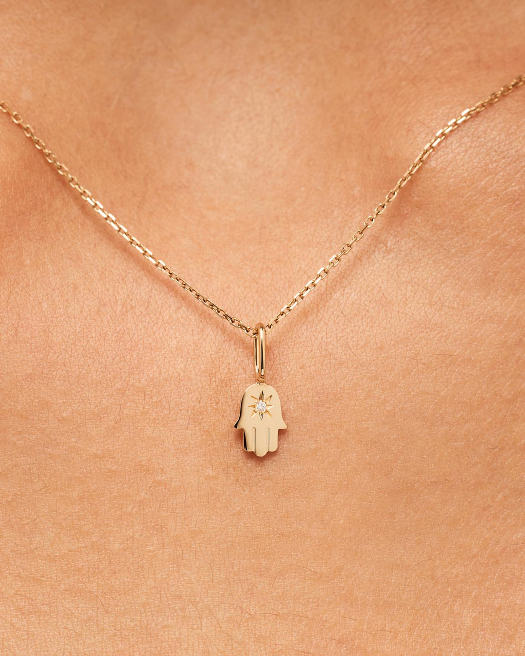 Solid Yellow Gold -  Diamond Hamsa Charm