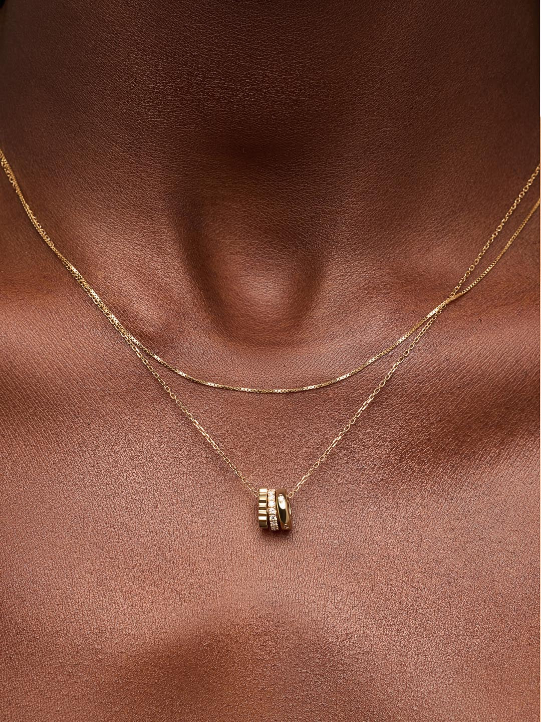 Solid Yellow Gold -  Diamond Zeno Charm Necklace