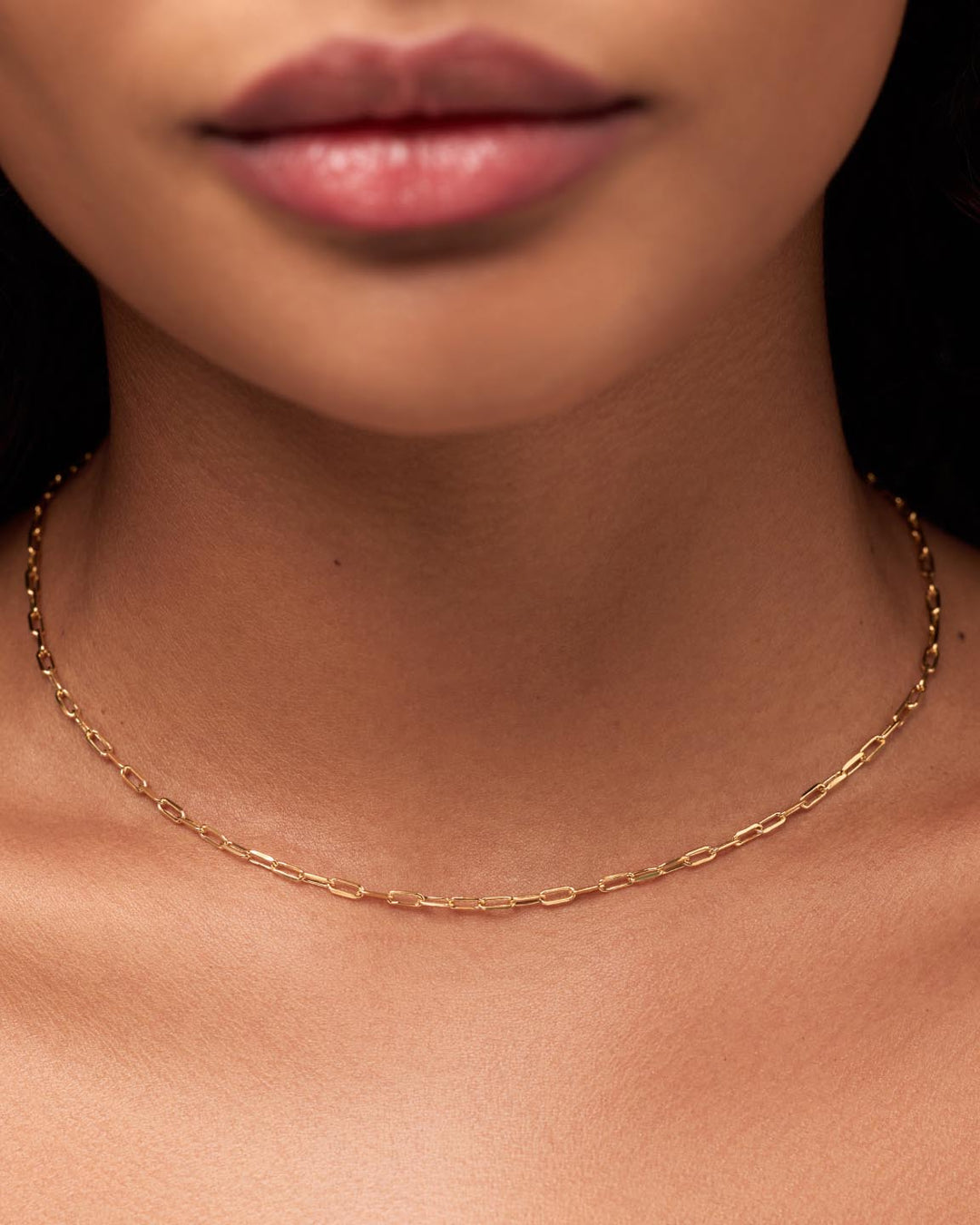 Stack it, layer it, wear it with everything—this solid yellow gold necklace will never go out of style. Crafted in recycled solid gold, this necklace features a timeless design with sleek paperclip links and a polished finish. Style this necklace with your favorite ring stack and a pair of simple hoops, like our Gold Huggie Hoops, for an easy everyday look.