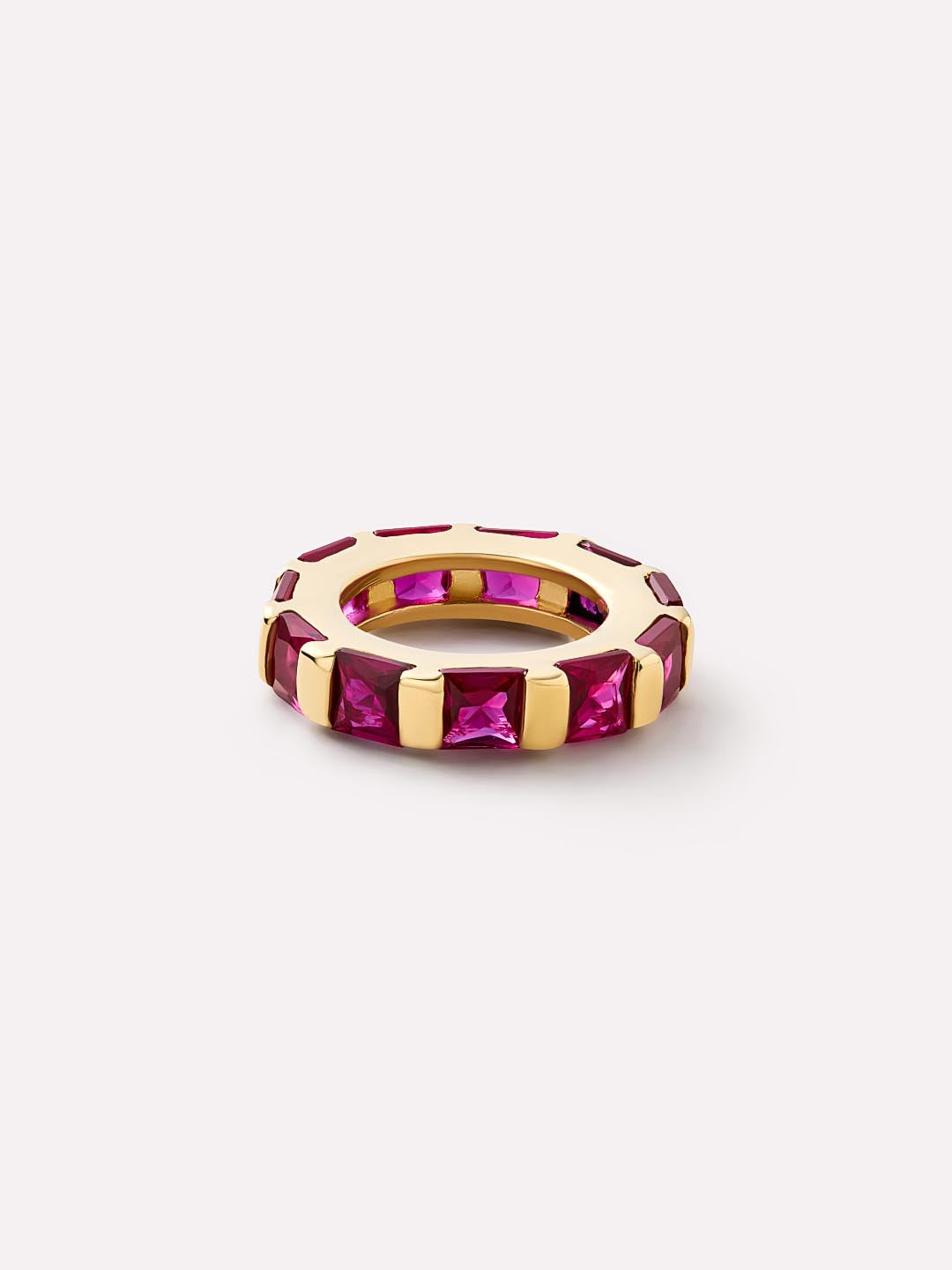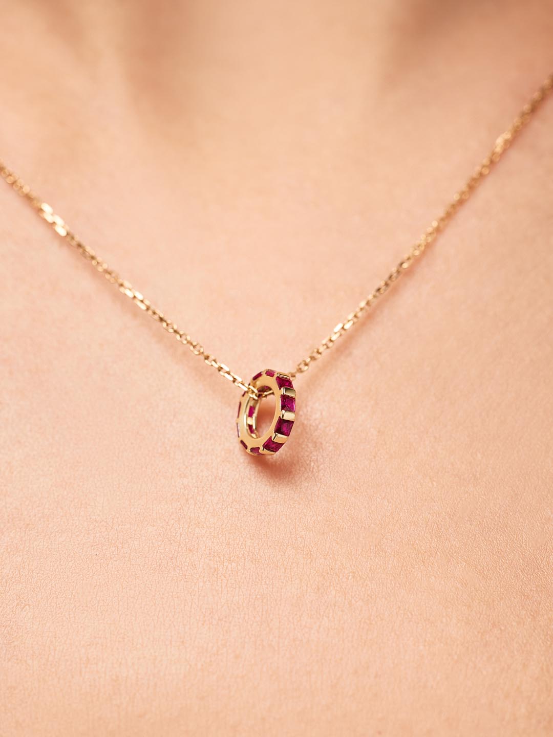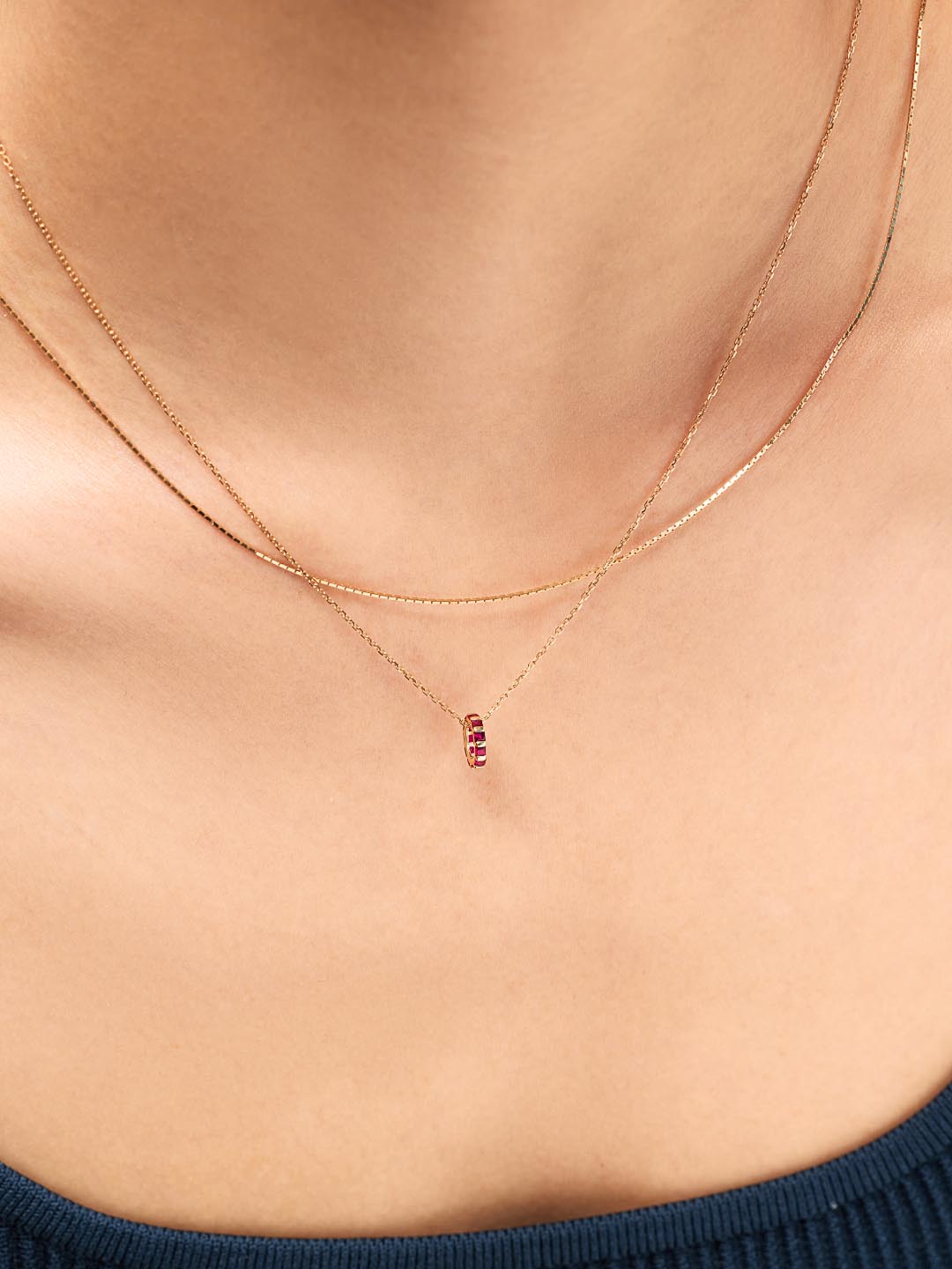 Let your stack stand out with this solid yellow gold charm. Waterproof and tarnish-resistant, this charm features a stackable design with beautiful lab-grown rubies for a bold touch of embellishment. This stackable charm pairs perfectly with any of our solid gold chains and looks great next to our Eclipse Charm.
