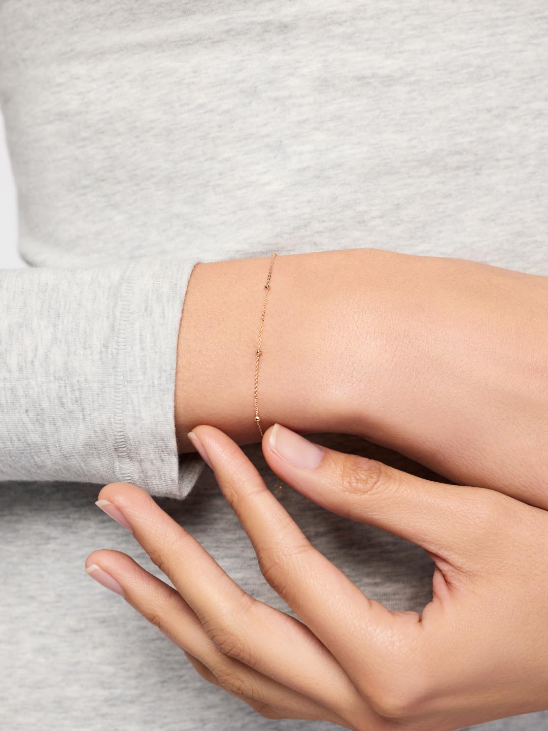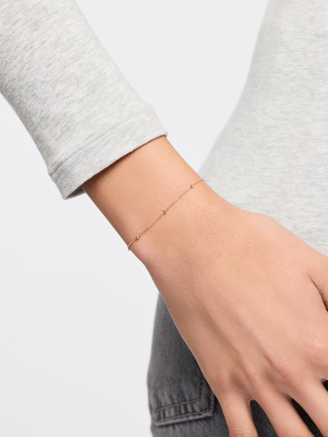This solid yellow gold bracelet is about to become your new everyday favorite. Made for 24/7 wear, this bracelet crafted in solid gold features a simple satellite silhouette and dainty design. Although this bracelet can be worn on its own, we recommend pairing it with our Gold Band Ring for a simple yet chic look.