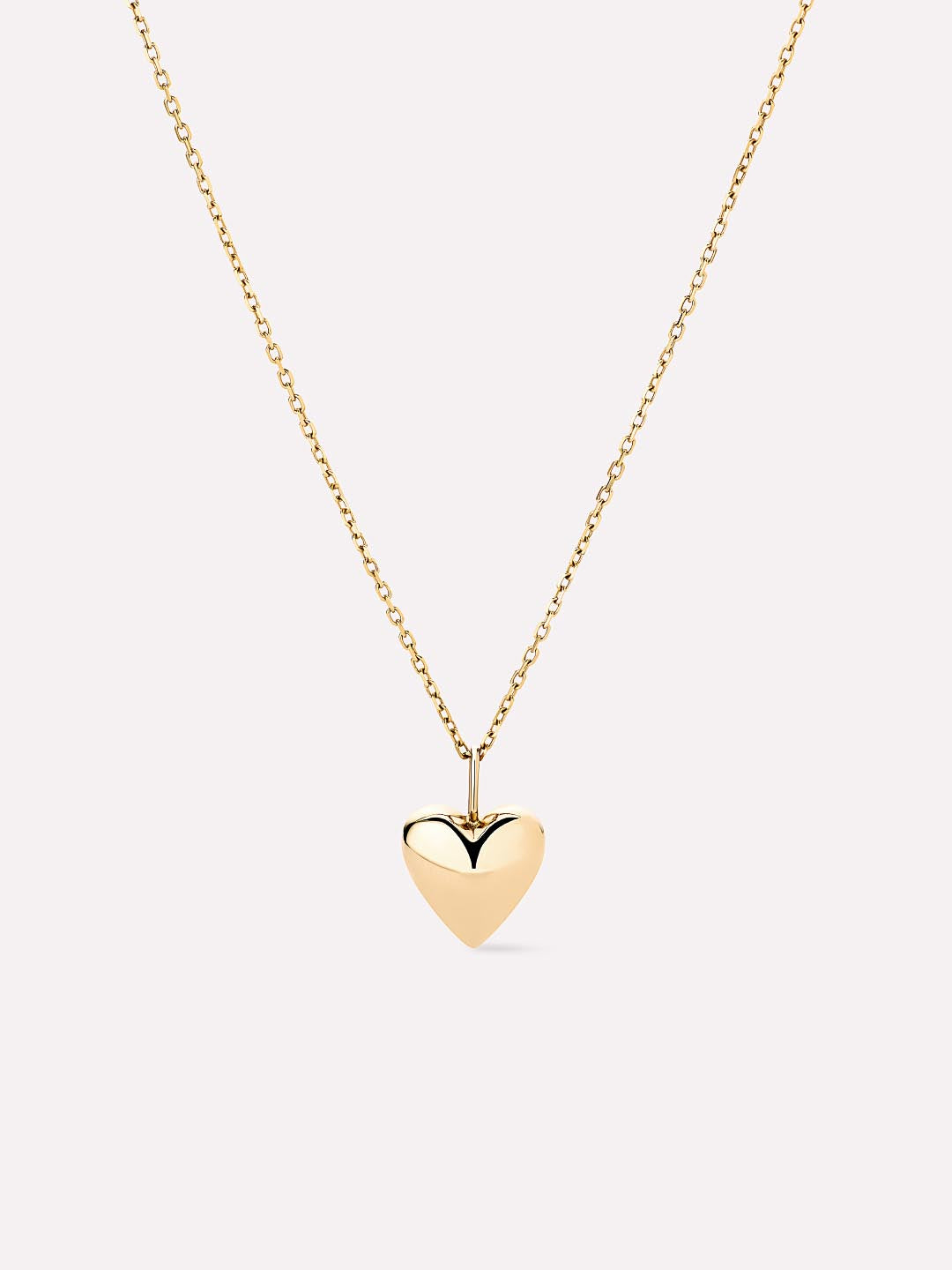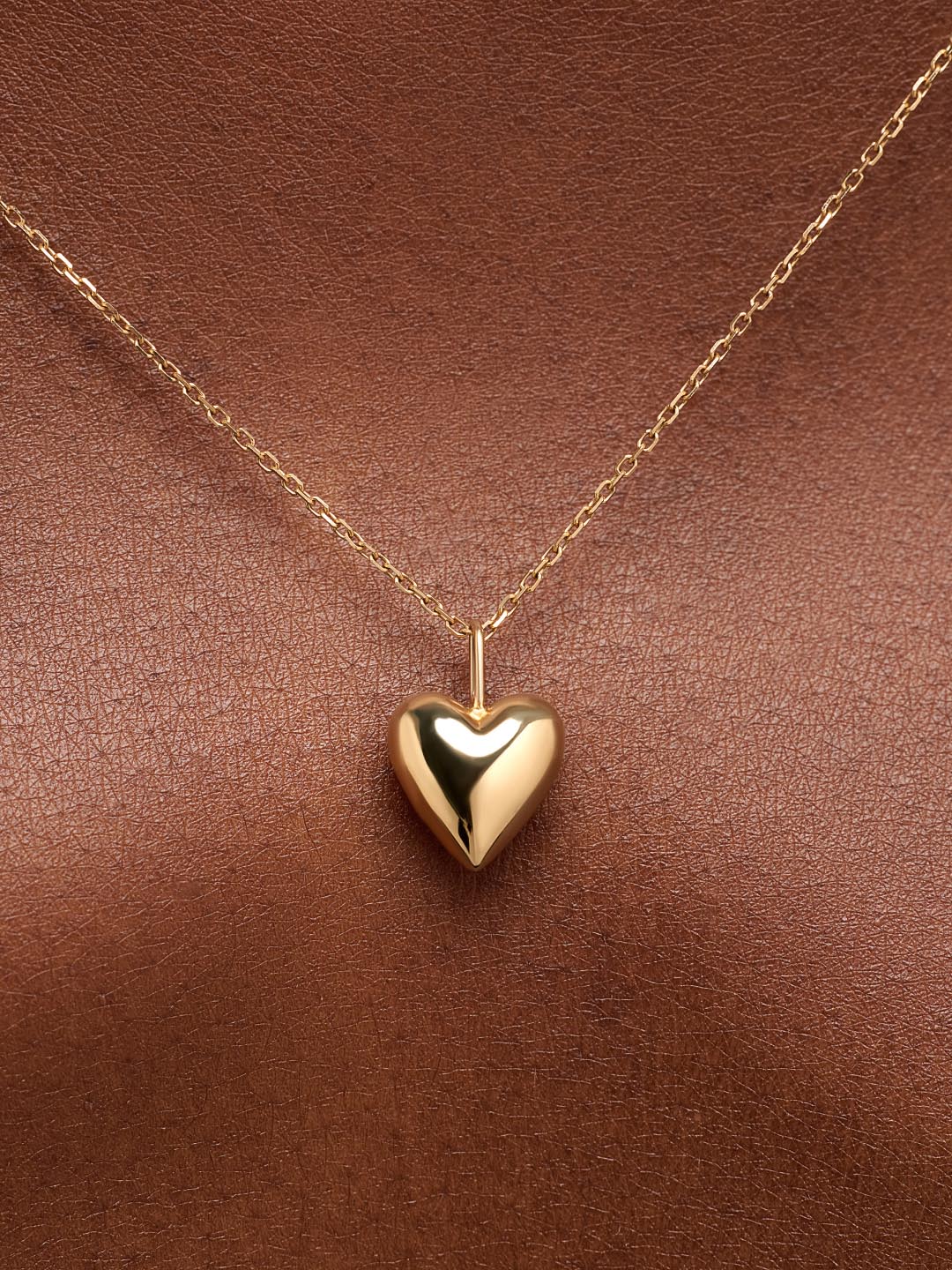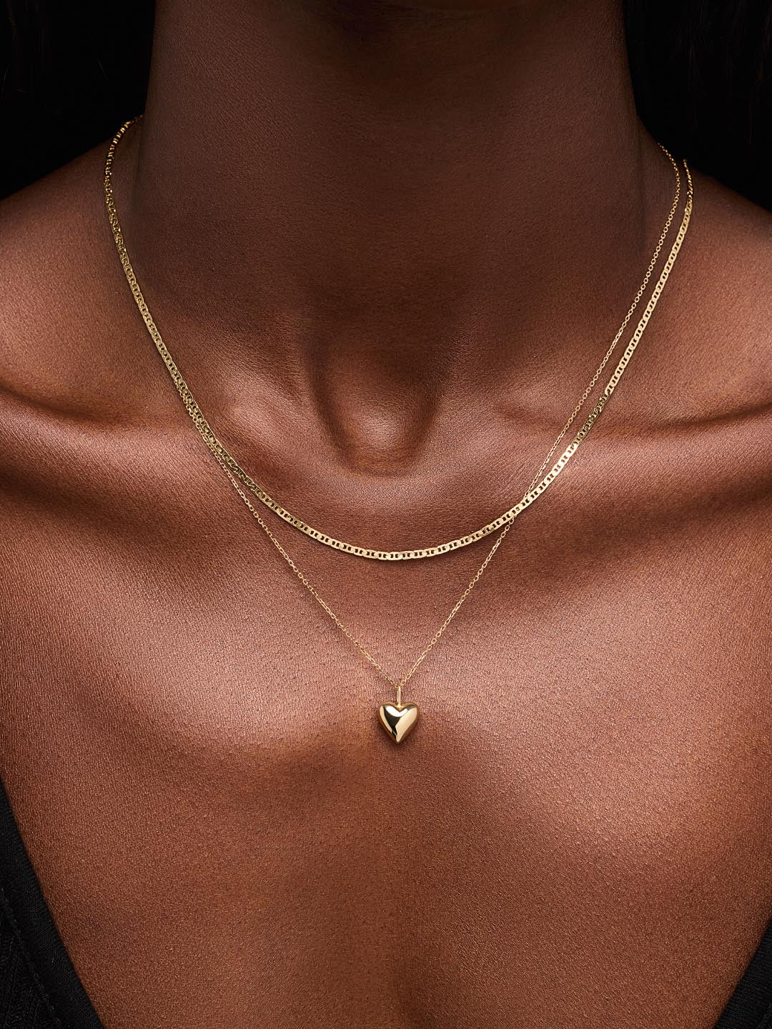 This solid yellow gold necklace is perfect for gifting or keeping close to your heart. Crafted in solid gold and designed to last forever, it features a delicate chain paired with a medium-sized heart charm for just the right amount of shine. Pair it with our Mini Heart Charm Necklace for a layered love story.