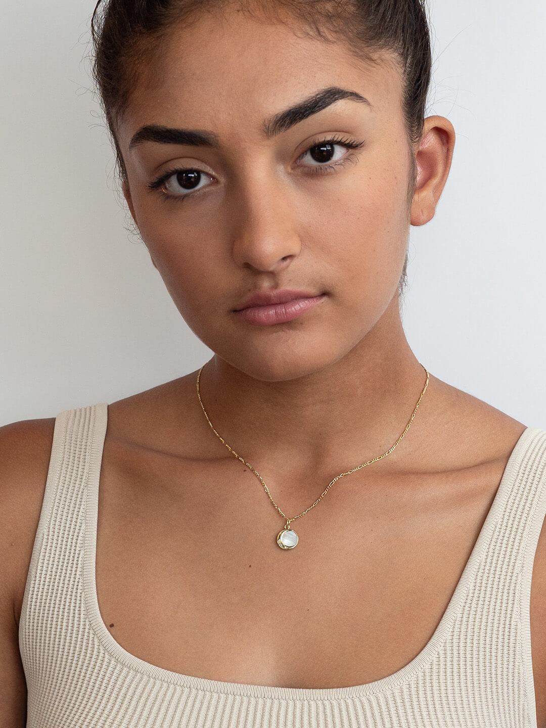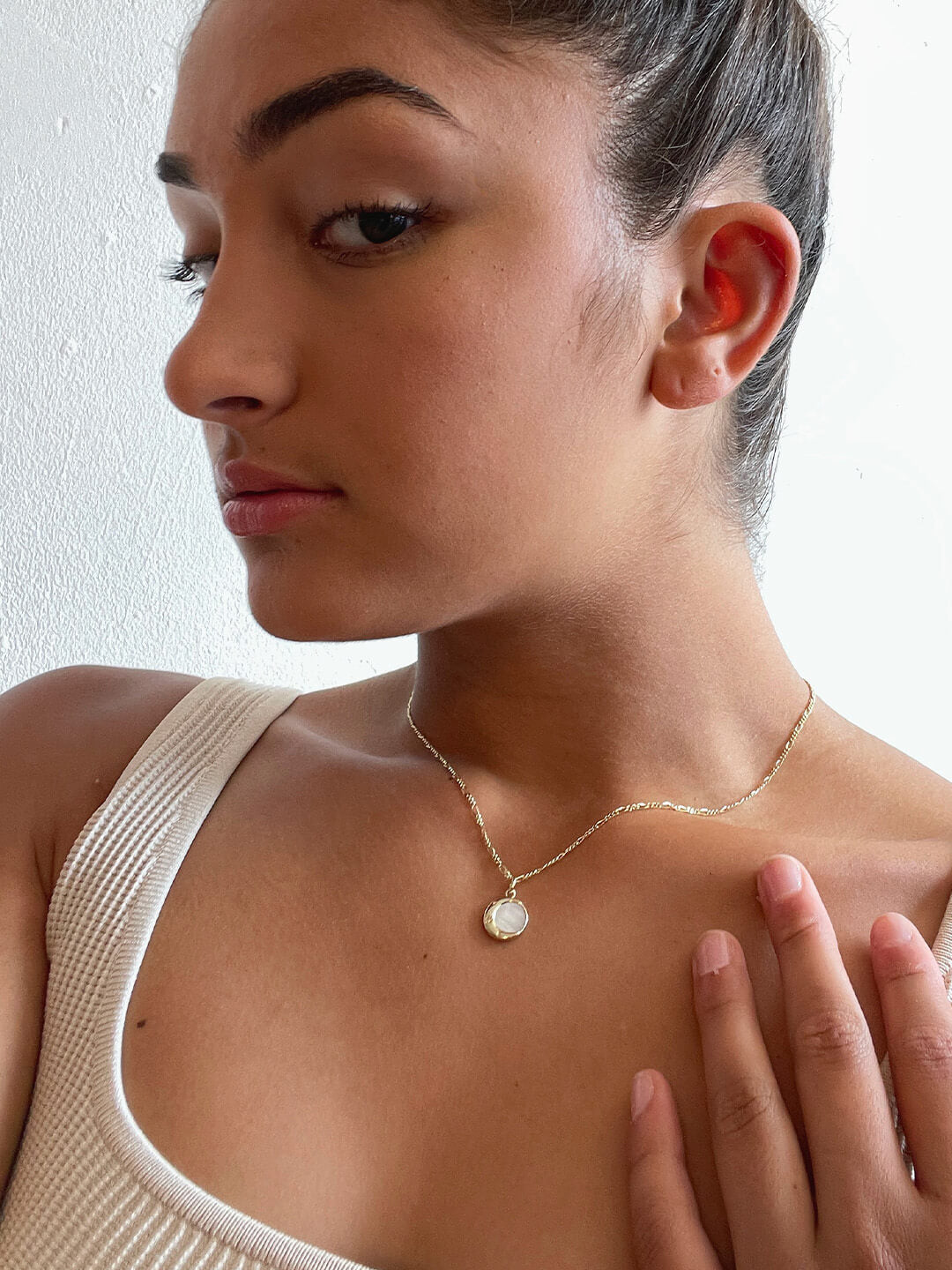 • Gold necklace with an iridescent Mother-of-Pearl pendant