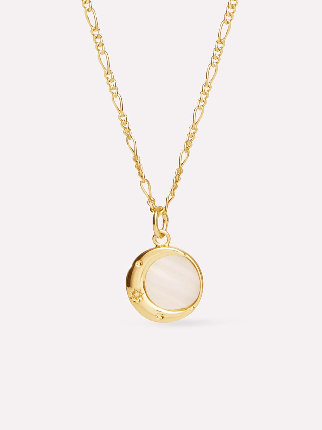 This radiant moon pendant designed with Michelle Danzinger (@michelledanzinger) showcases a luminous half-moon shape covered in sparkling cubic zirconia and an iridescent Mother-of-Pearl accent. Dipped in 14K gold, this crescent moon necklace looks gorgeous when paired with pearl jewelry. You can wear the moon pendant alone or layer it with other celestial-themed necklaces to create a unique look.
