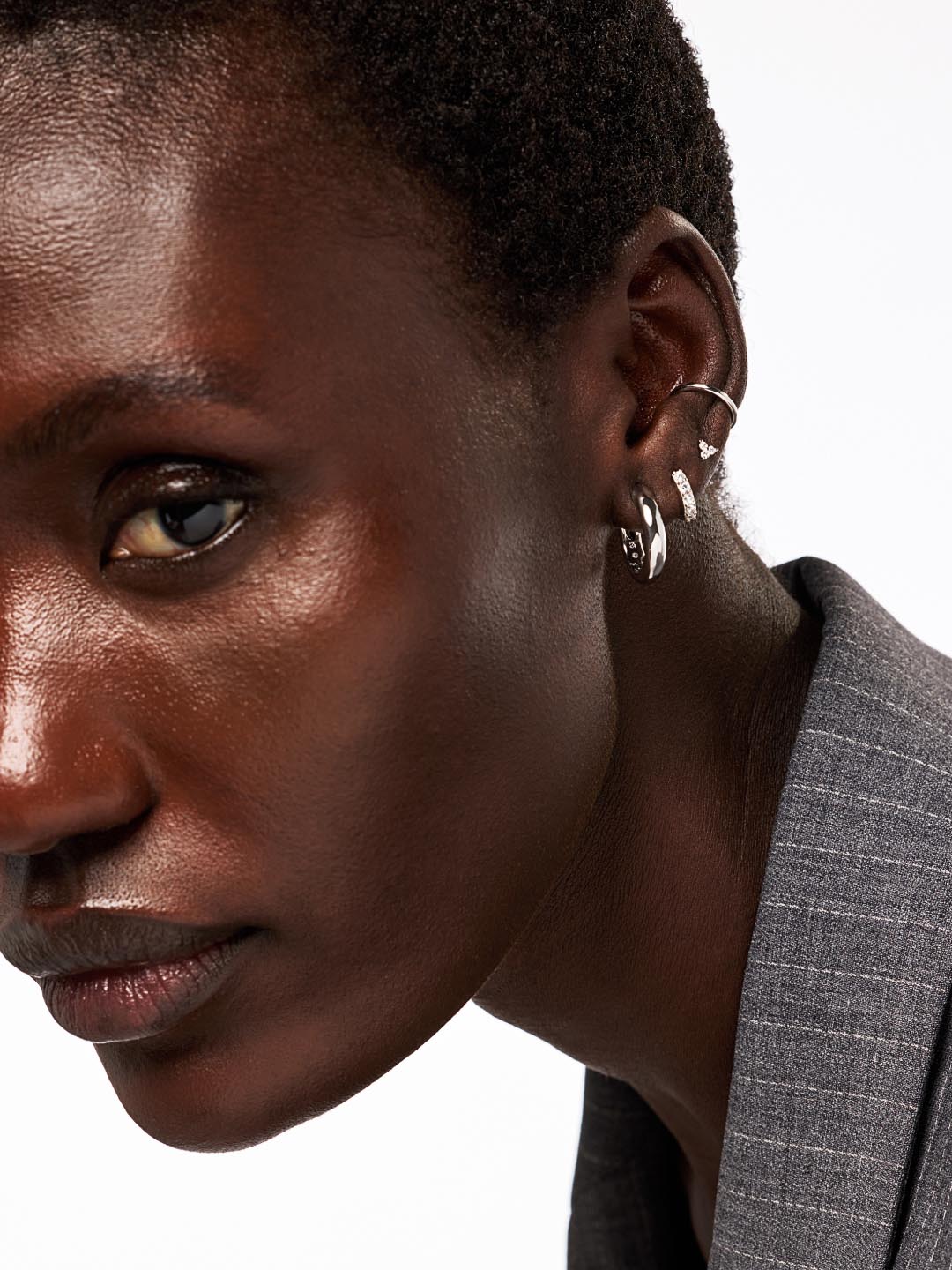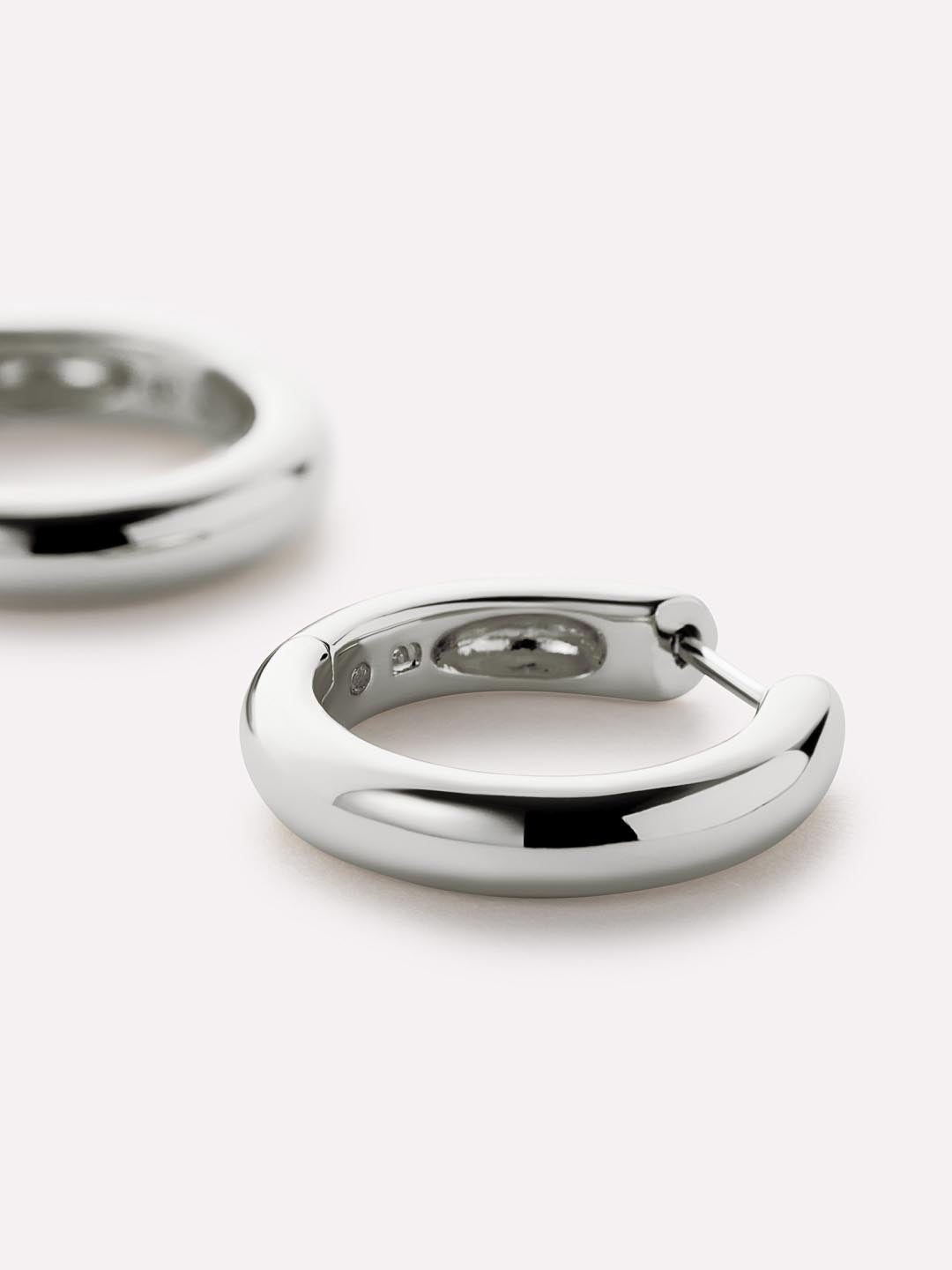 No jewelry collection is complete without a pair of classic silver hoop earrings. Plated in rhodium, these versatile hoops feature a timeless design made to be stacked up, styled solo, and worn day or night. Style these hoops with our Giulia hoops for a matchy look or with our Toda hoops for a statement-making look.