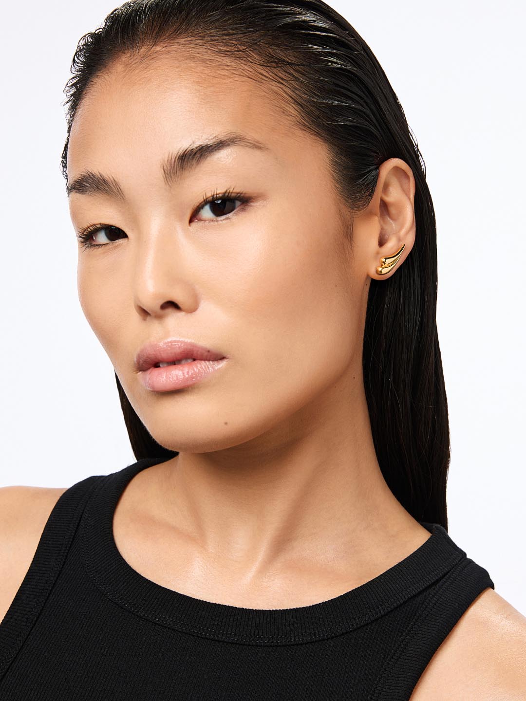 These statement earrings are more than just your average pair of studs. Shiny and chic, these studs plated in 14k gold feature two sleek teardrops in a stacked design. These unique earrings are an easy way to take your stack from day to night. Style these studs with our Brynley bangle on your next night out for a look that’s sure to turn heads.