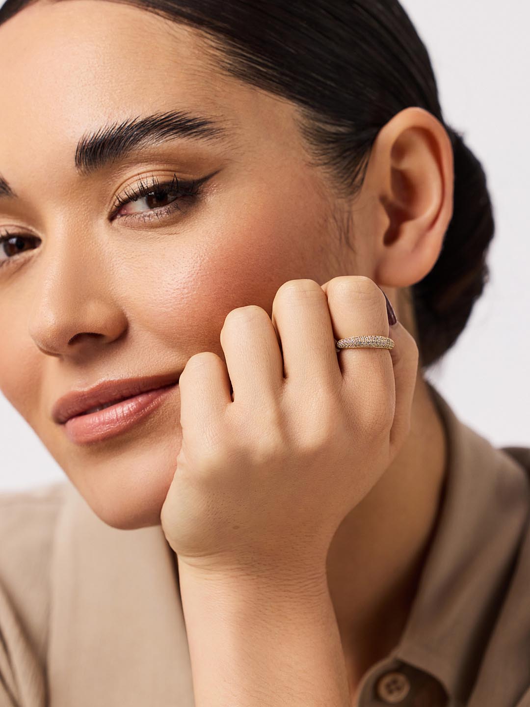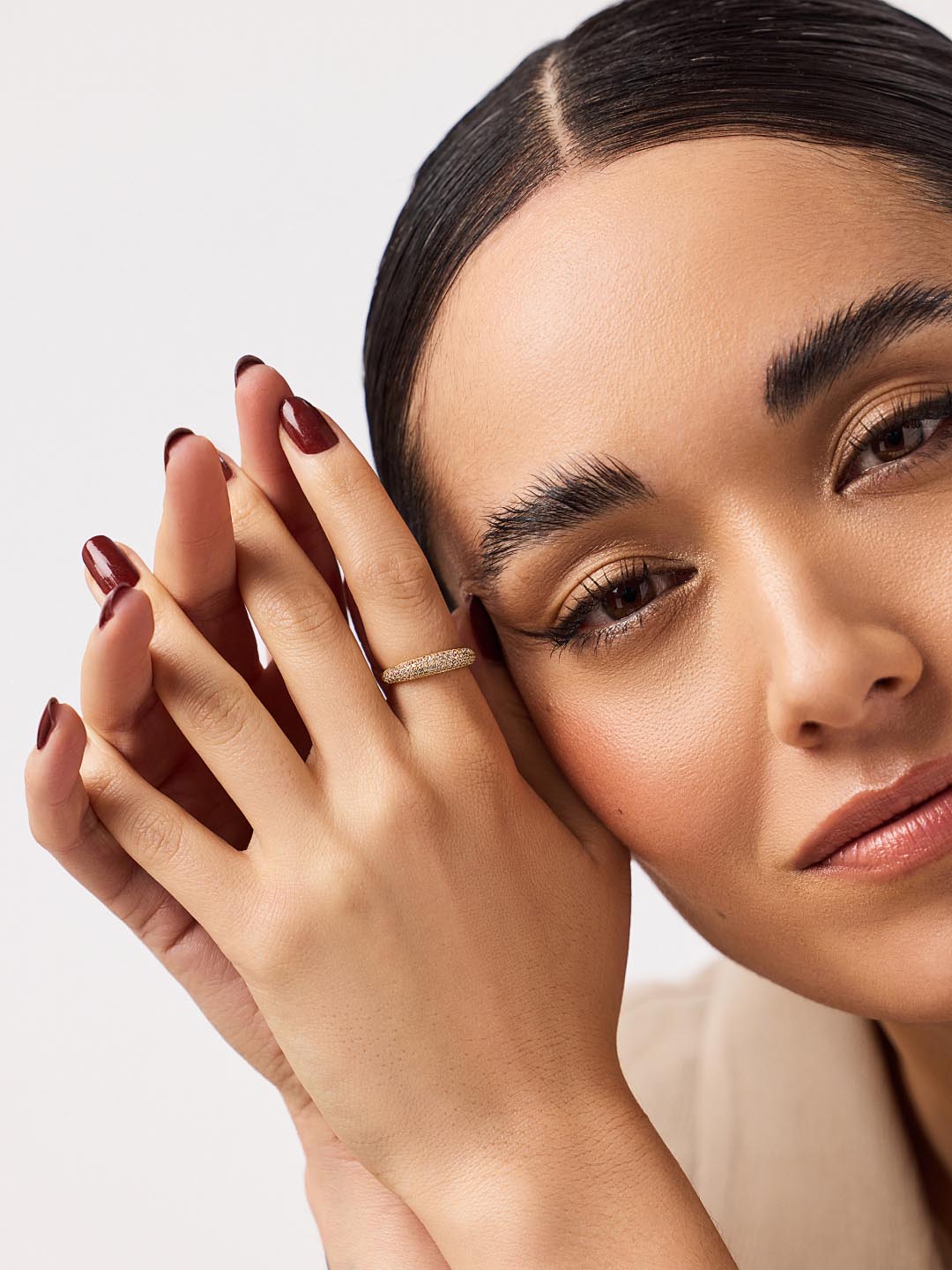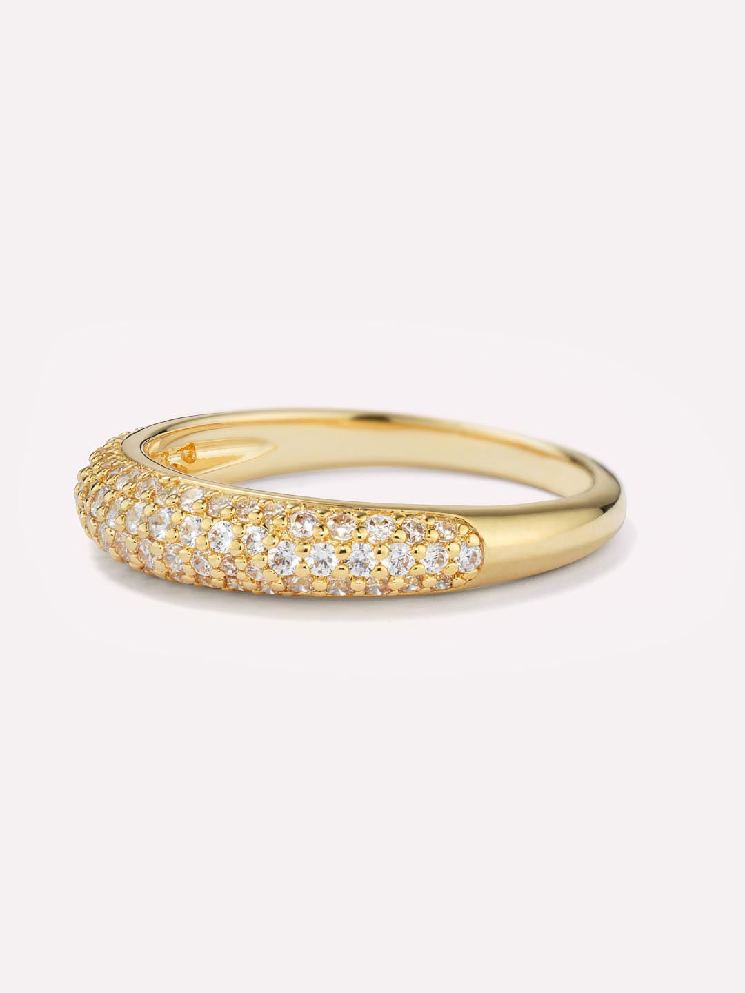 Elevate your stack with this dome ring. Plated in 14k gold, this tarnish-proof ring features eye-catching cubic zirconia embellishments for the perfect sparkly finishing touch. The simple yet chic dome silhouette is designed to take every look up a notch. For a stack made to stand out, we’d recommend pairing this piece with our Oren ring.