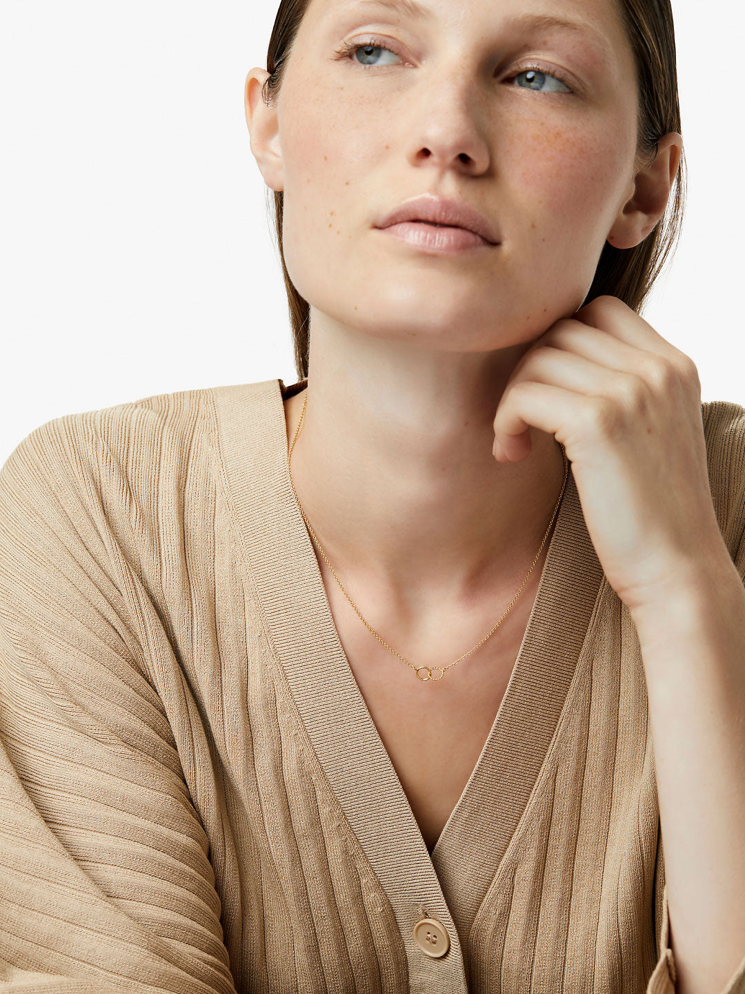 Symbolizing the eternal bond of love and friendship, this interlocking circles necklace is a timeless jewelry piece. Crafted in 100% recycled Sterling Silver and dipped in 14k gold, this dainty necklace features one ring with a smooth finish and a second ring with a subtle twisted design. Complete the look by shopping our matching Jill bracelet.