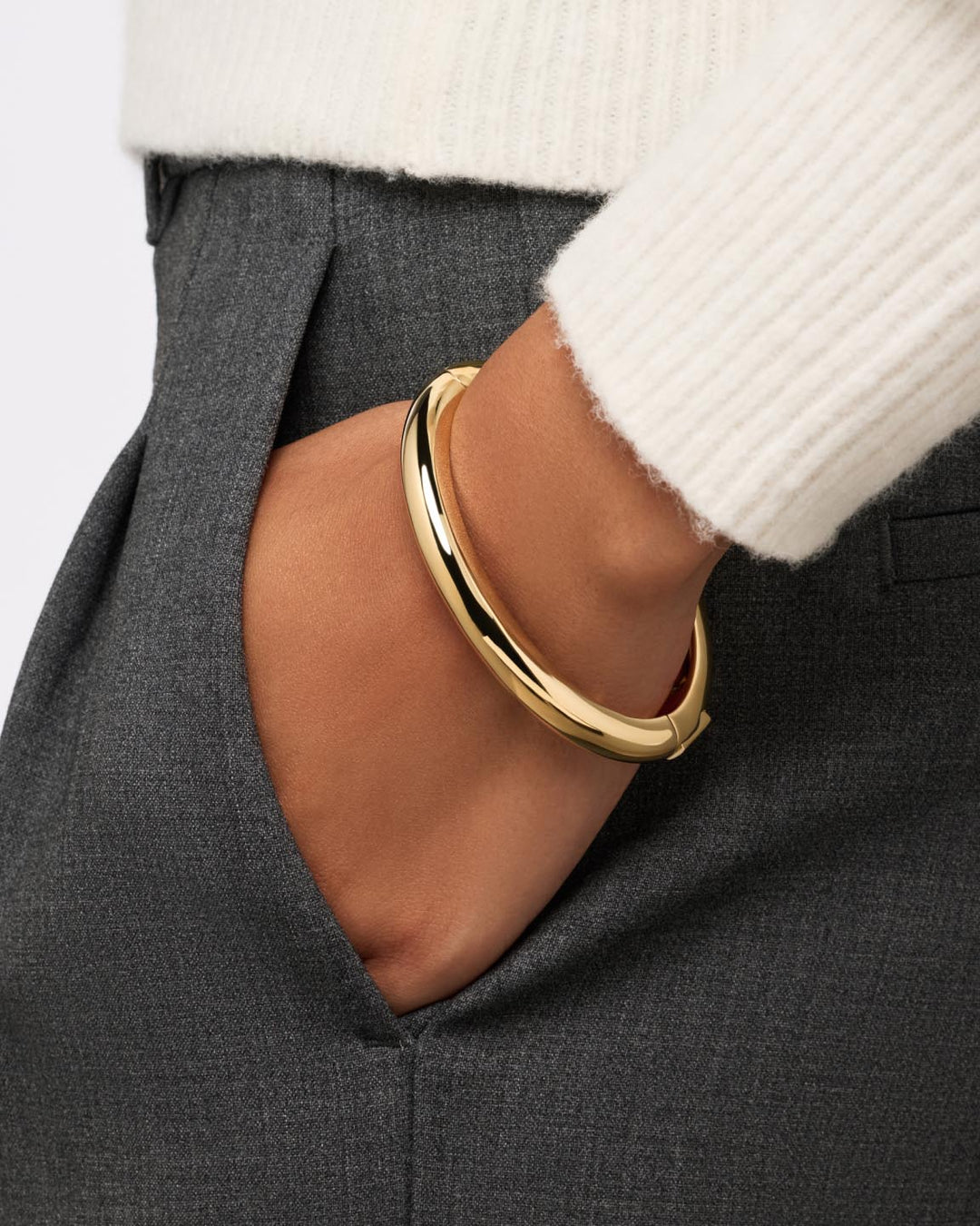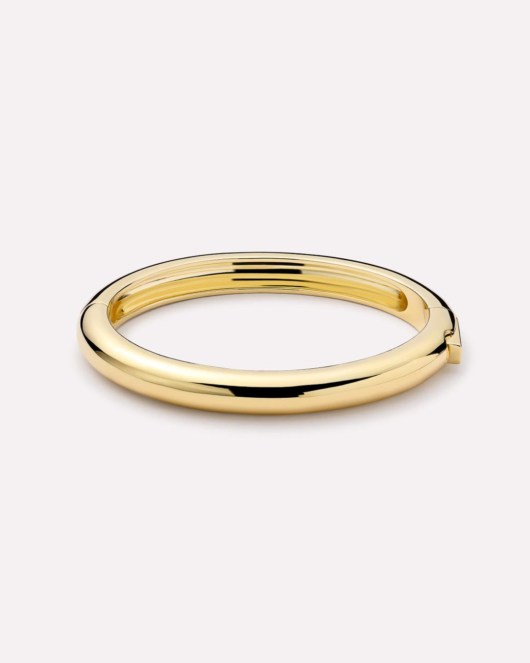 Simple and sleek, this gold bangle bracelet plated in 14k gold features a chunky silhouette and perfectly polished finish for an added touch of shine. Style this bracelet with our chunky Noa ring for a simple yet bold look.