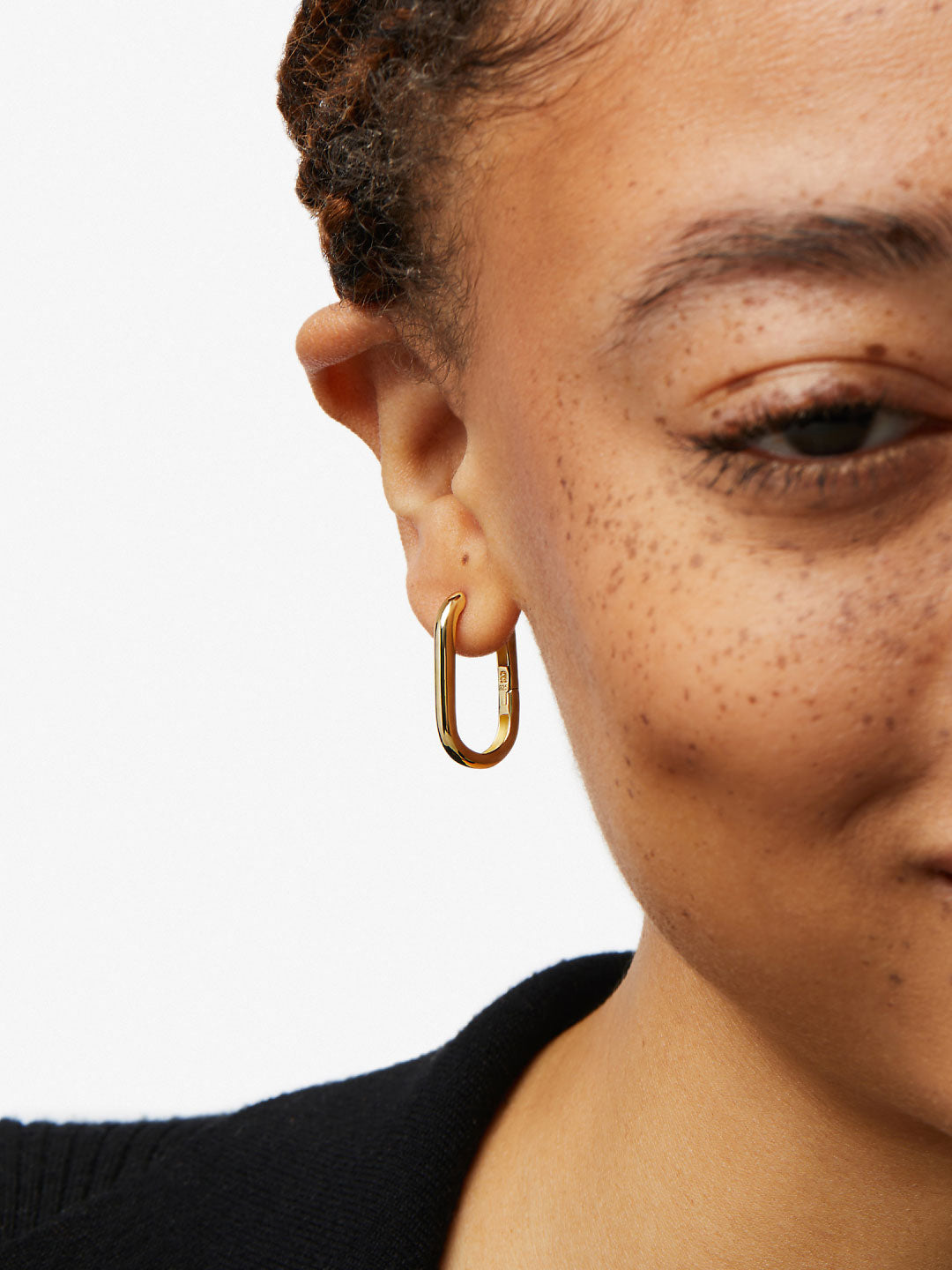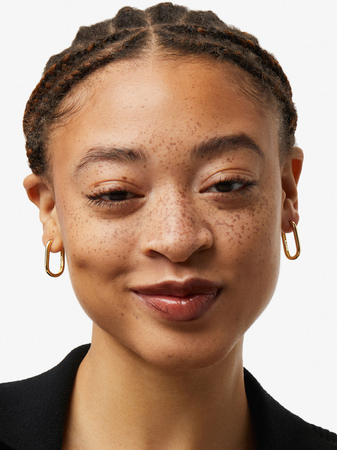 These medium gold hoop earrings are the perfect addition to our bestselling Rox hoop earring club. Complete your stack with these 14k gold-plated stunners, perfect to dress up any look with a little extra glow. Pair these gold hoop earrings with our Rox small or Rox mini earrings for an all out hoop stack.