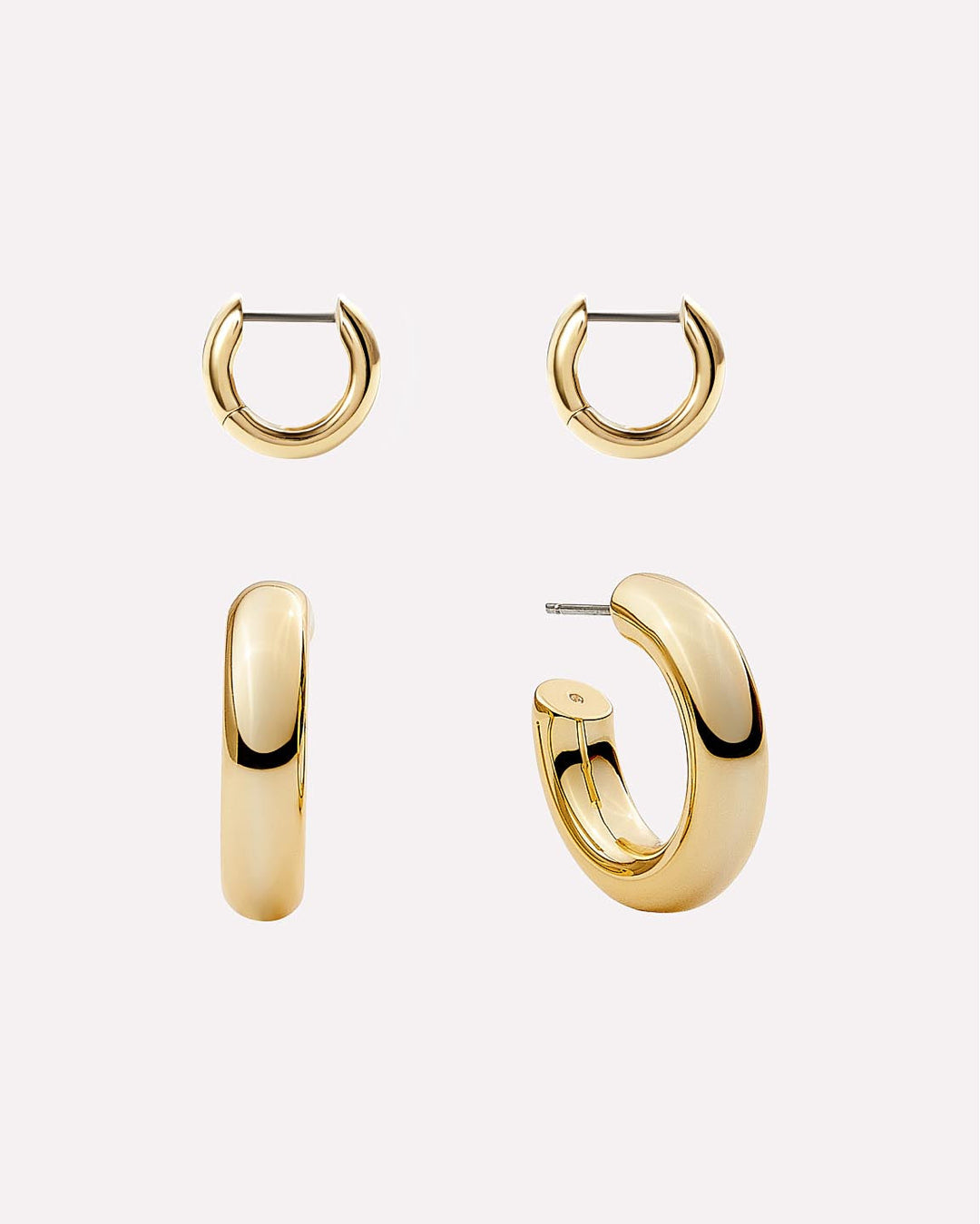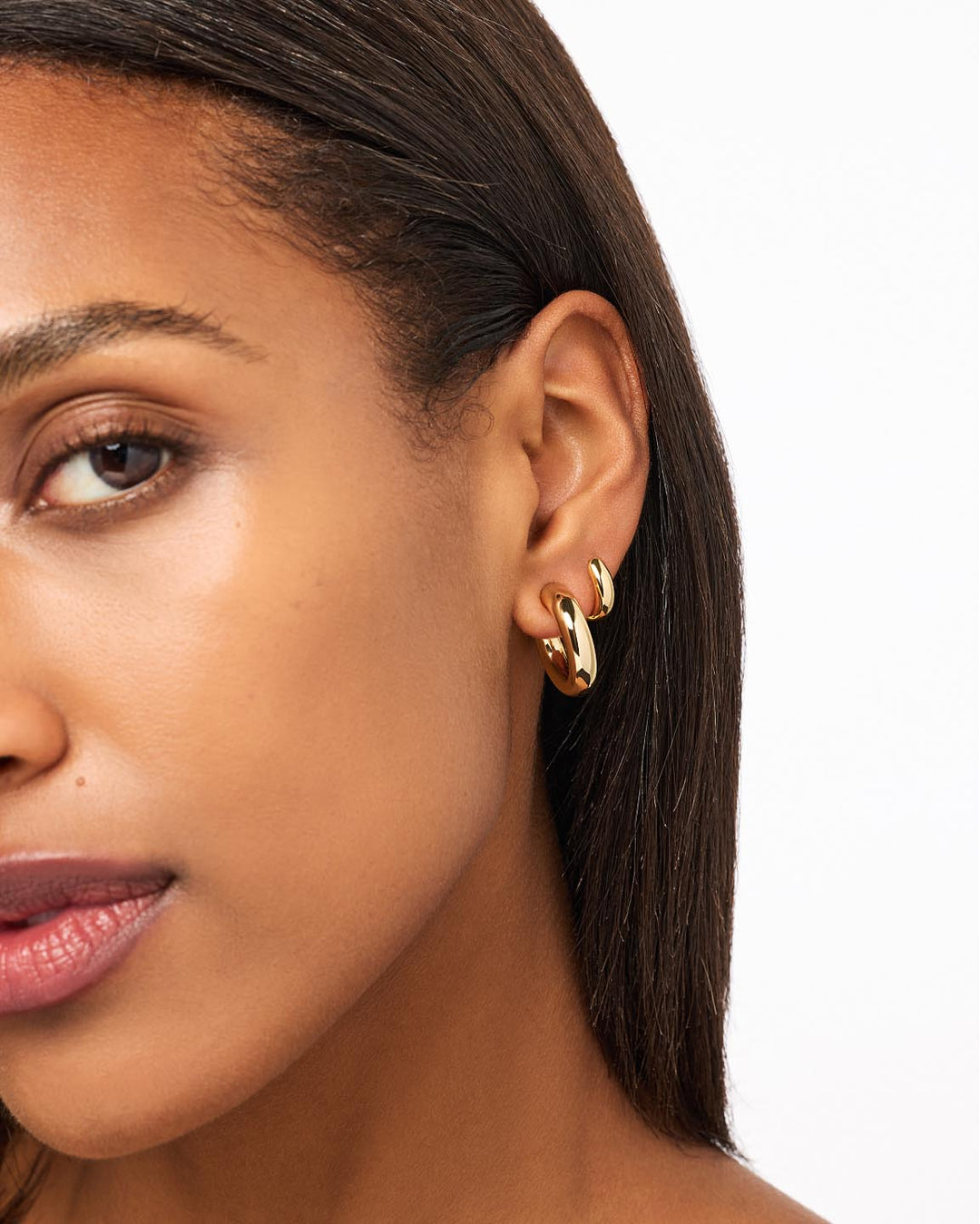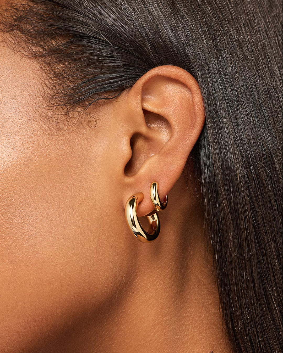 The Statement Stack Bundle includes two pieces: Small Gold Hoop Earrings - Tia Mini and Bold Huggie Hoops - Giulia.