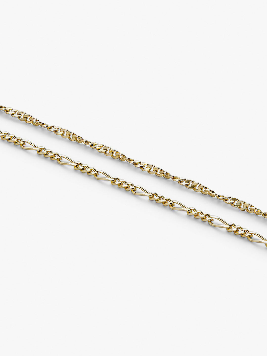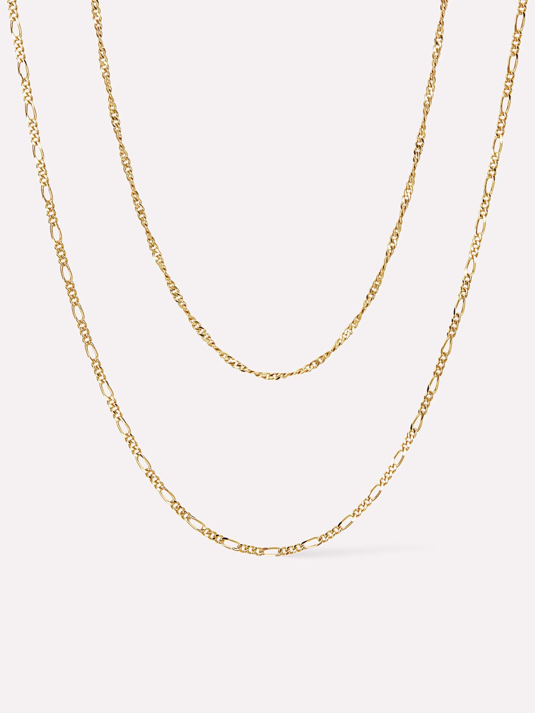 This dainty layered necklace set composed of two heritage chains is the jewelry equivalent of the little black dress. Delicate and dipped in 14k gold, these two chains are perfect for stacking or wearing as separates! Pair this set with statement earrings for an edgy look or with simple studs for a chic minimal vibe.