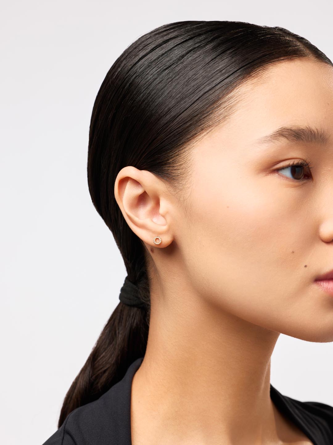 More than just a simple pair of studs, these solid yellow gold earrings are an elevated addition to every stack. Crafted in recycled solid gold, these studs feature a circular design with lab-grown diamonds for a statement-making finishing touch. Pair these earrings with our Gold Mini Diamond Studs to create a timeless yet bold stack.