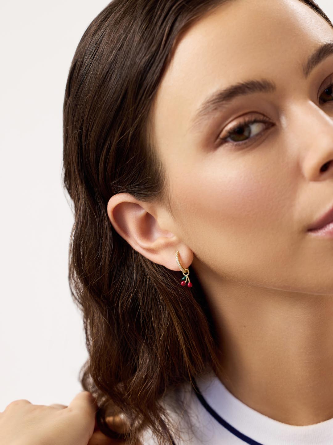 The most fun finishing touch, these earring charms are the perfect combination of playful and chic. Plated in 14k gold, these charms feature a cherry-shaped silhouette and smooth enamel detailing for the perfect pop of color. Add these fun charms to any of our earring charm hoops for the cherry on top of your perfect ear stack.