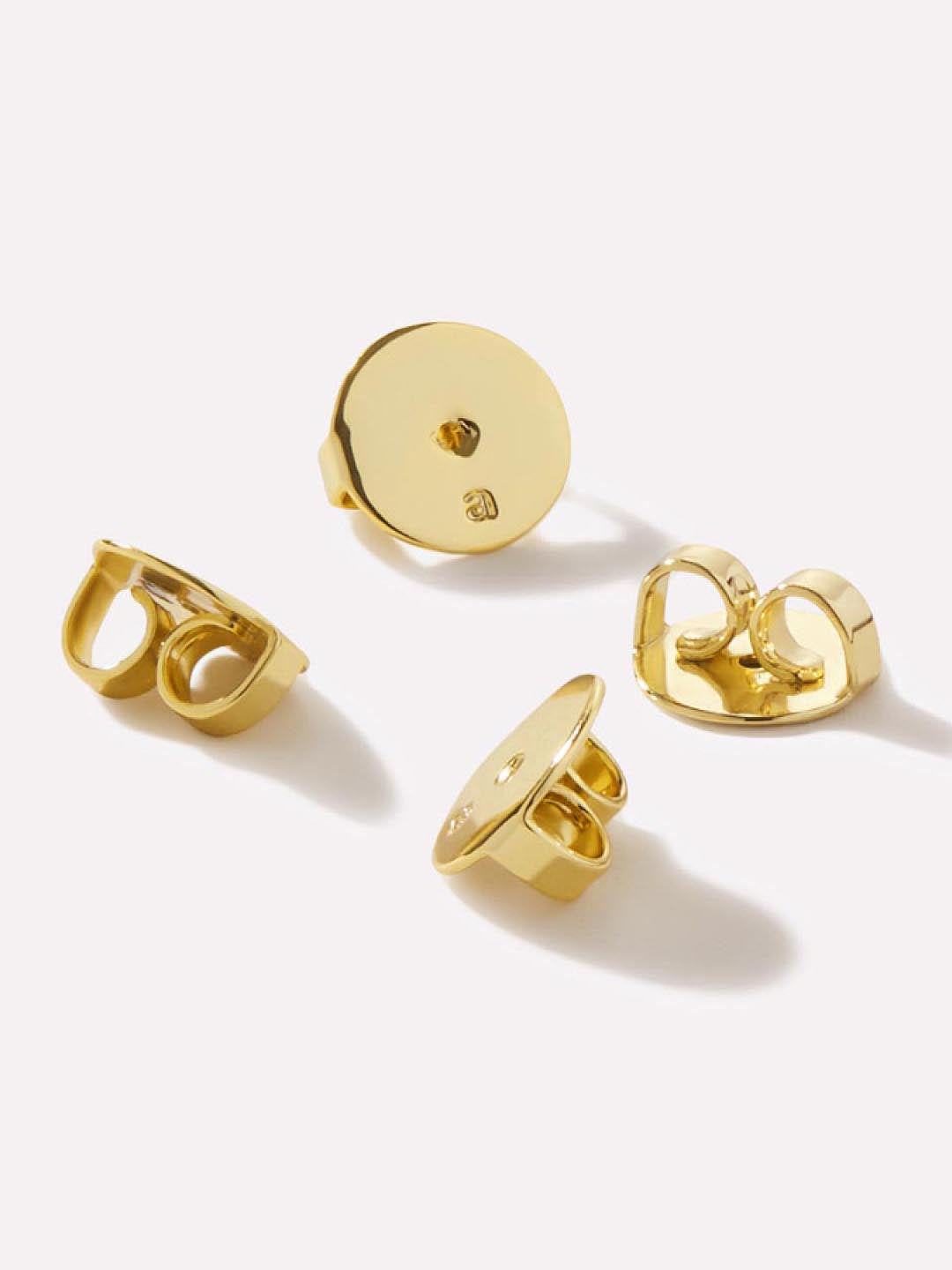 Lost your earring backs? Just need a backup pair? We can fix that. Plated in 14k gold, this set features two pairs of sleek earring backs in a comfortable design. Designed to fit Ana Luisa earrings, these earring backs are made to pair with studs and earrings with post backs. Wear them with your favorite everyday earrings for hassle-free accessorizing. Please note that our Earrings backs are Final Sale.