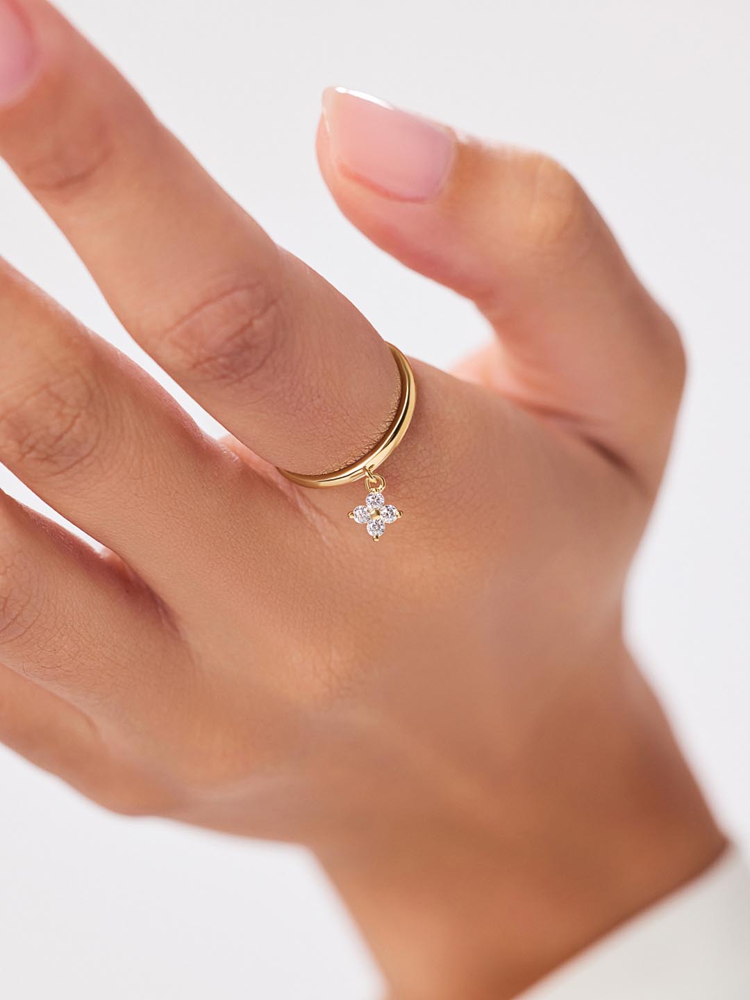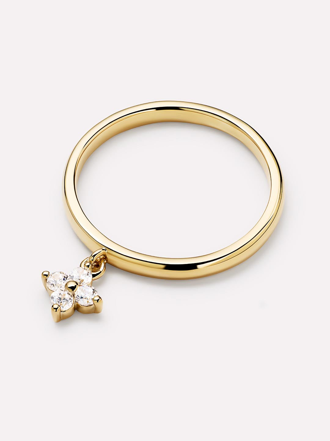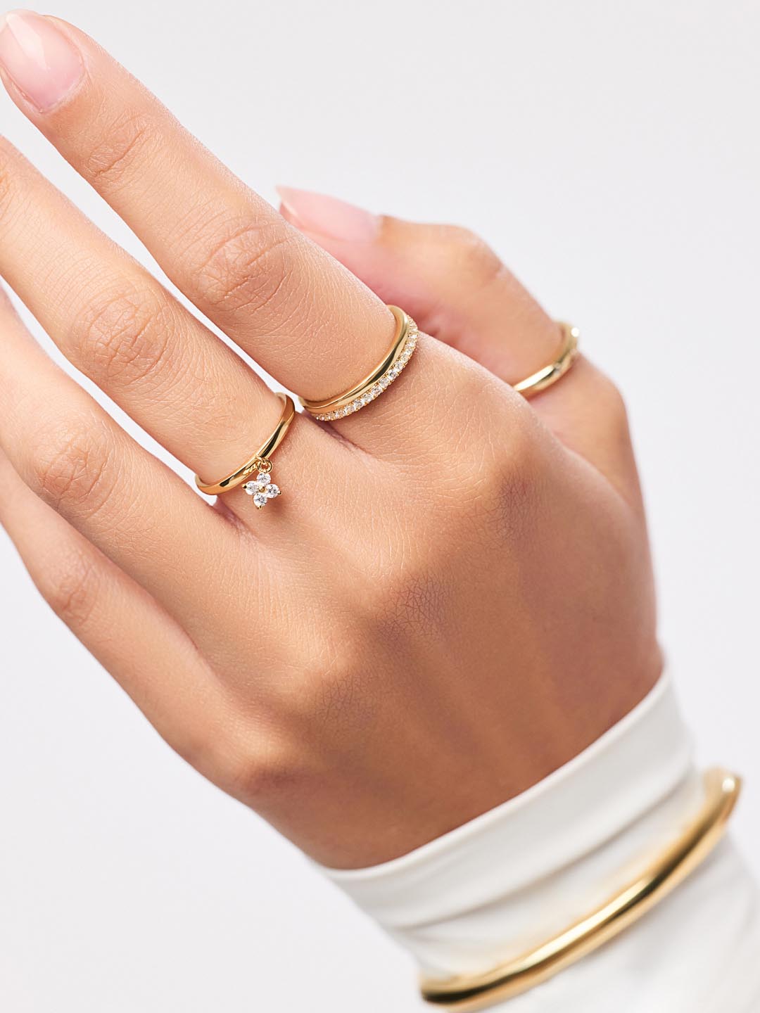 Bring your stack to completion with this gold band ring. Plated in 14k gold, this simple ring features a sleek band and dangling, gemstone-adorned charm. This minimal ring can be worn on its own or stacked with our Céline ring for an extra sparkly touch.