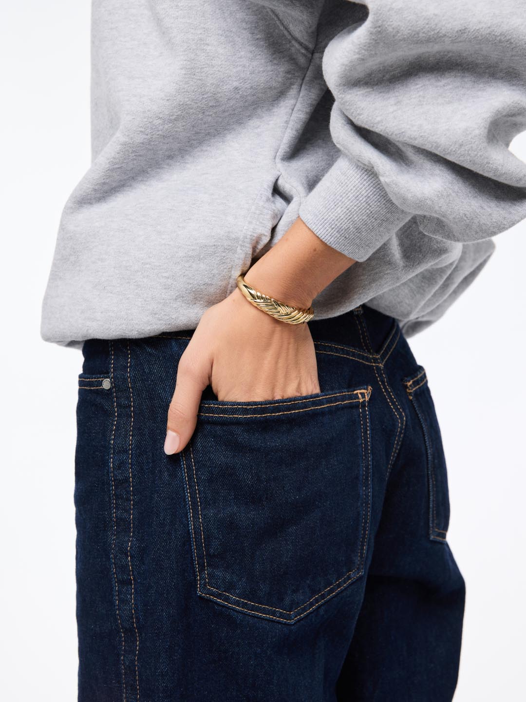 Simple yet bold, this gold cuff bracelet is truly the best of both worlds. Plated in 14k gold, this cuff features overlapping textured details and a shiny gold finish. Pair this bracelet with our Haven earrings for a perfectly textured look.