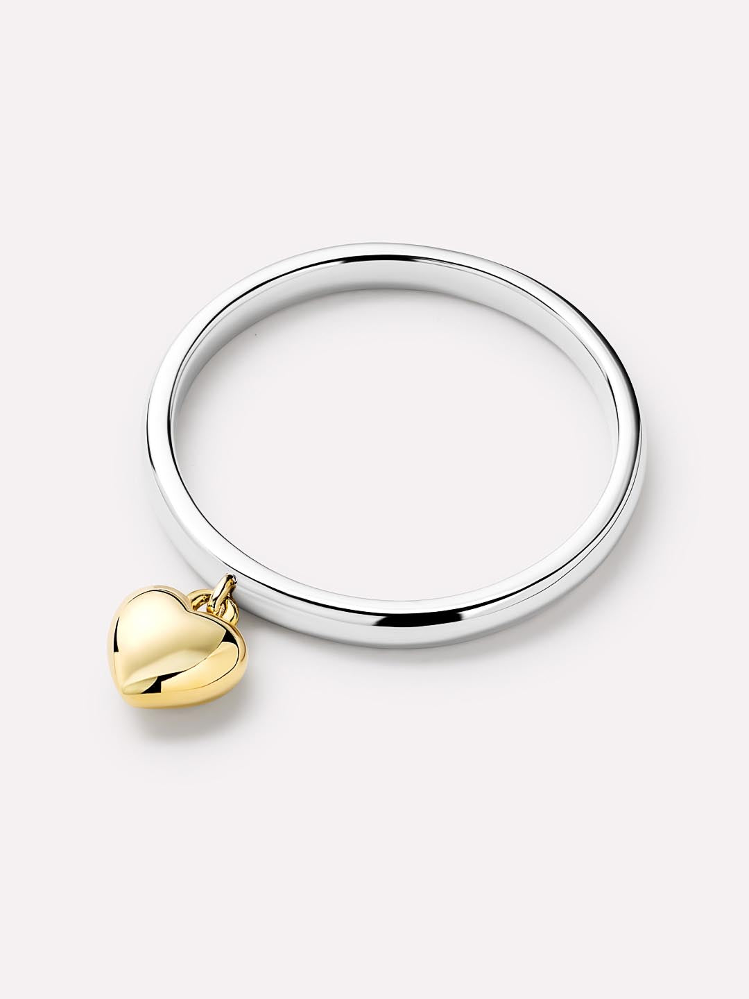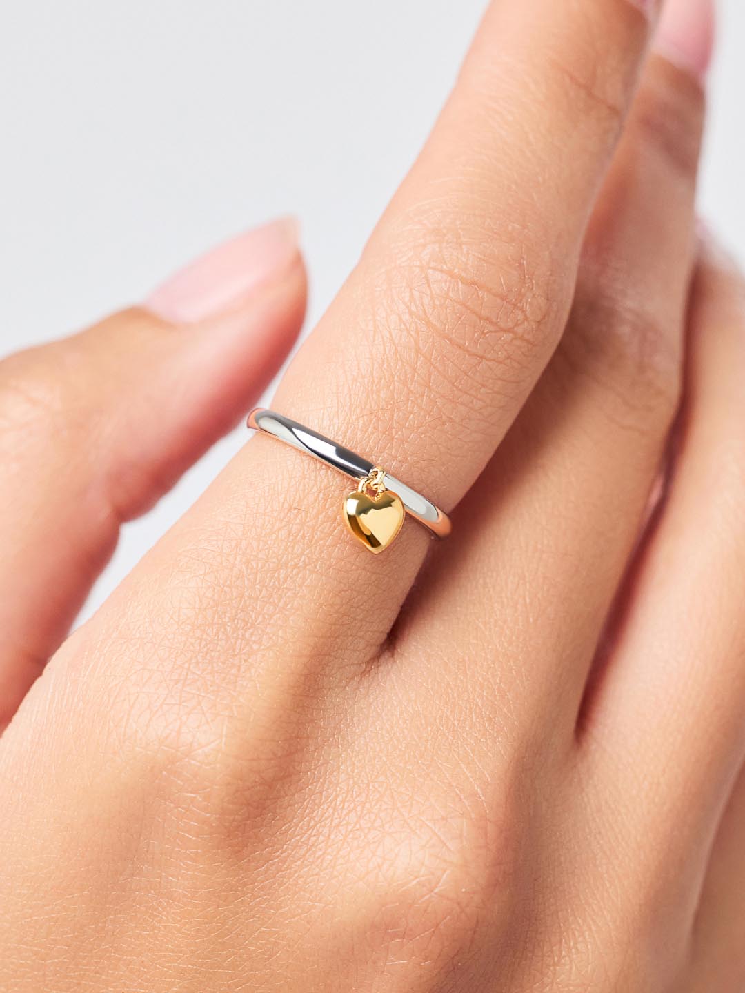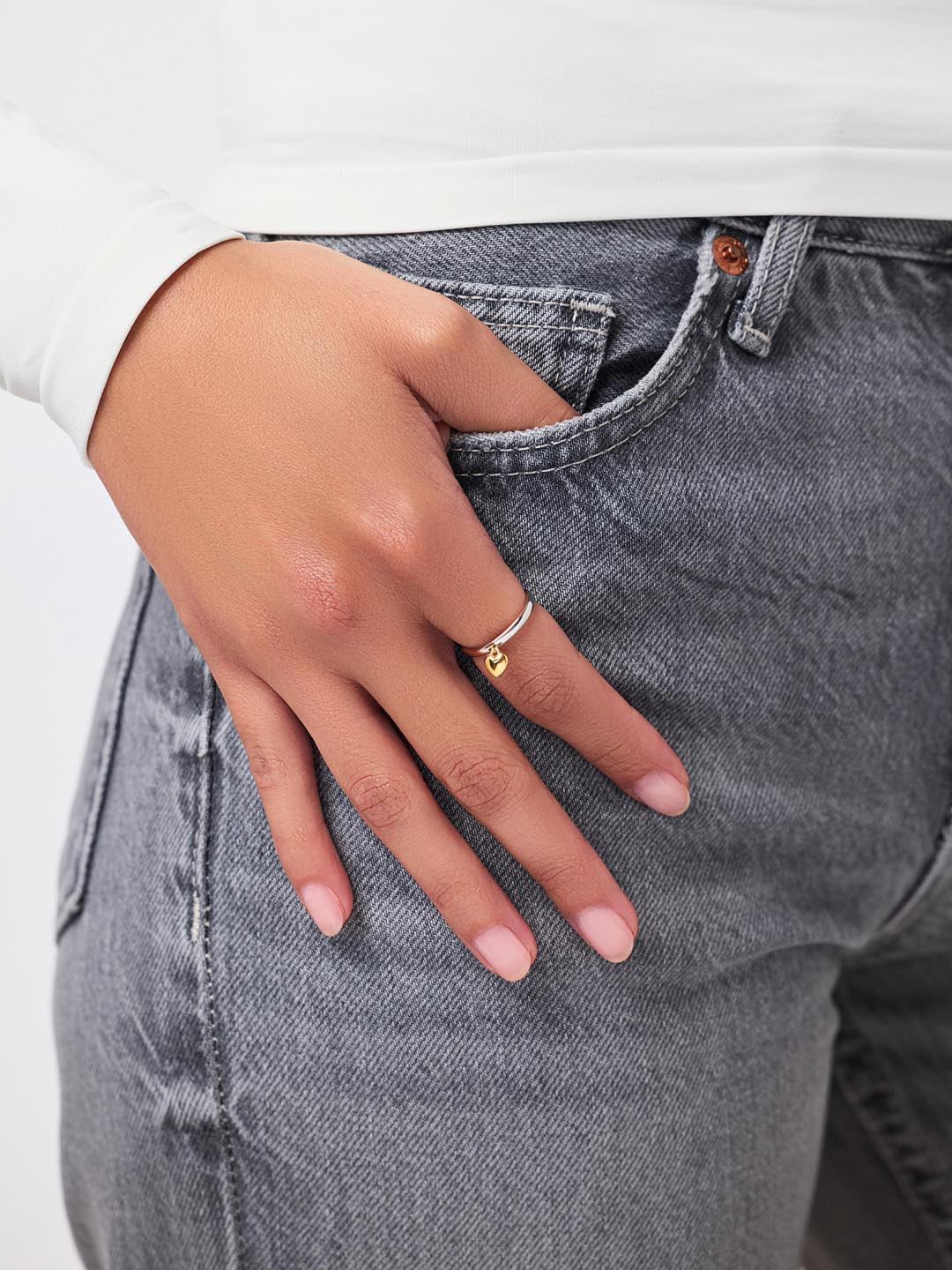 This heart ring is about to become your new favorite way to mix metals. Featuring a rhodium-plated band and 14k gold-plated heart charm, this timeless ring is a charming addition to any jewelry collection. Style this sleek ring with our Oren ring for a little bit of sparkle.