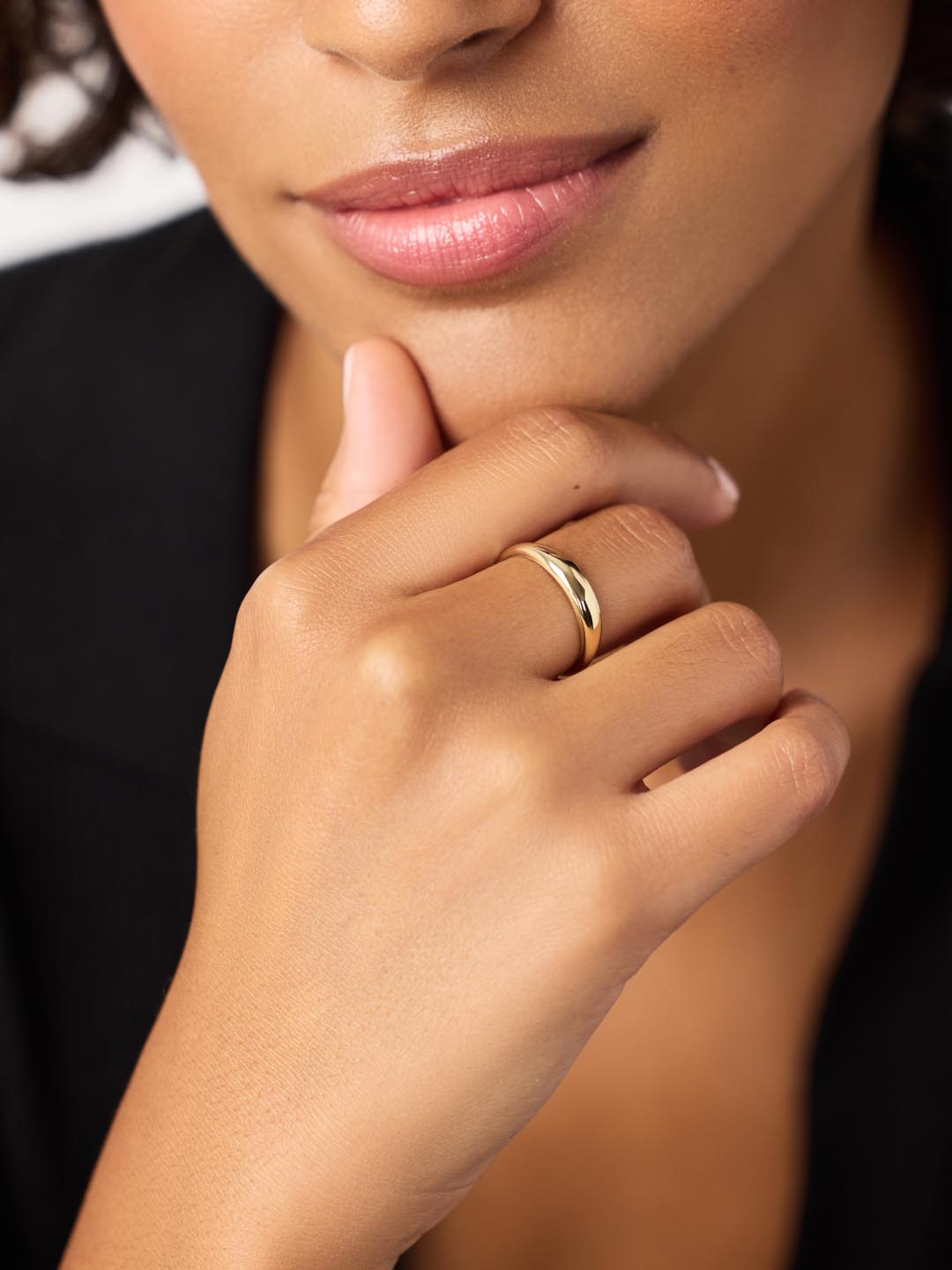 Contemporary meets chic with this beautiful gold band ring. Designed to finish off every stack, this ring is crafted in solid gold and features a sleek dome silhouette and shiny polished finish. Whether you’re dressing up for date night or just throwing something on to run errands, this waterproof dome ring truly does it all. Pair this ring with our Gold Huggie Hoops for a truly timeless look.