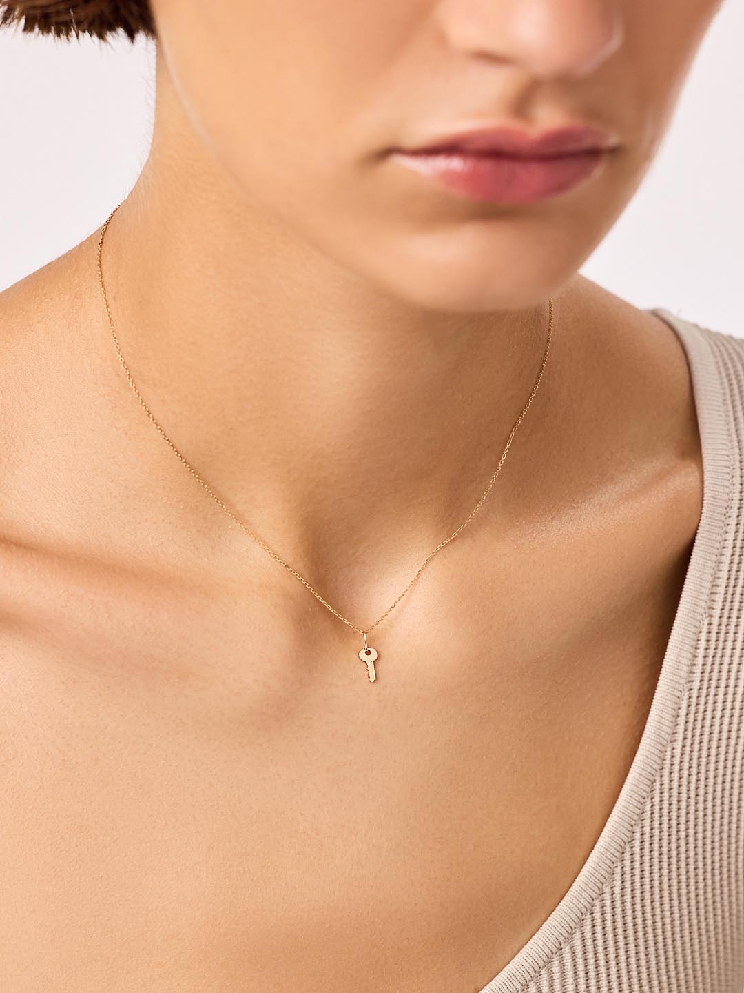 The Key Charm Necklace includes two pieces: Dainty Gold Necklace - Gold Chain Necklace & Gold Pendant - Gold Mini Key Charm.
