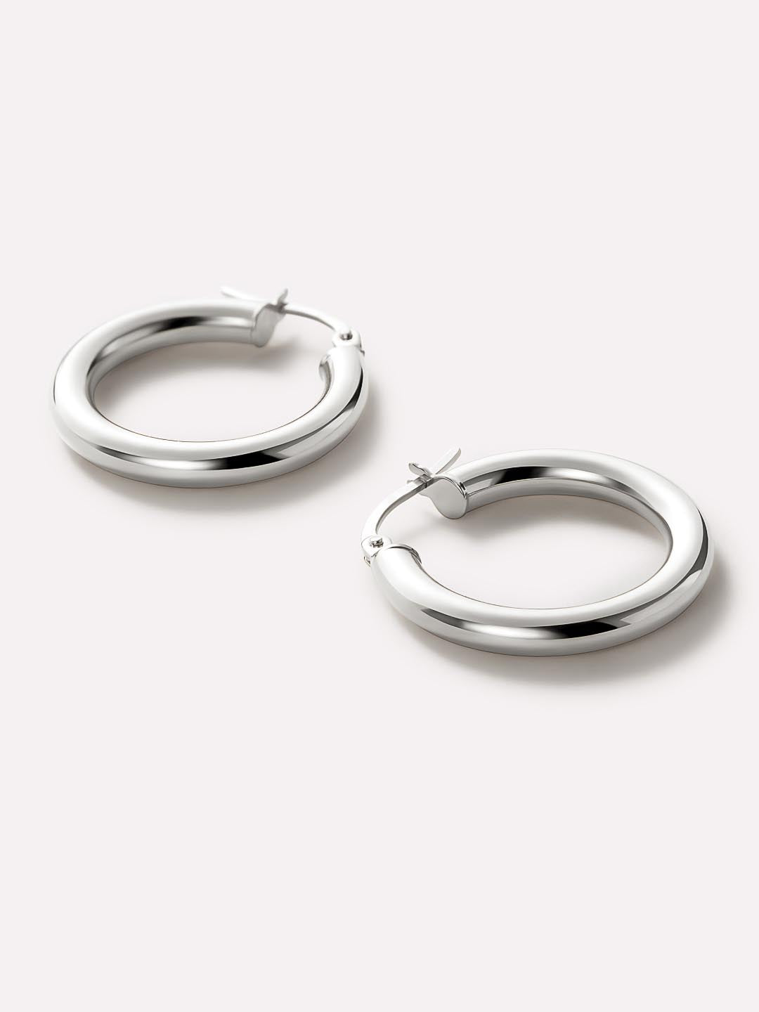 White Gold Hoop Earrings -  White Gold Classic Hoops Medium