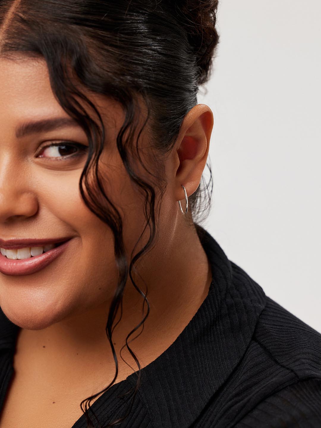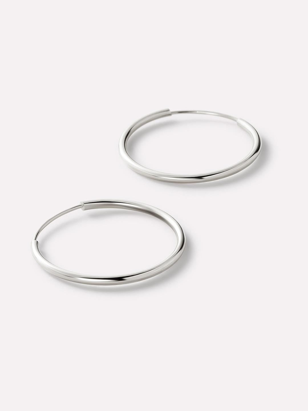 These white gold hoop earrings are the perfect sleek staple. Crafted in waterproof, solid-white-gold, these medium-sized hoops feature a slim silhouette made for everyday wear. Pair these timeless hoops with our Pebble necklace for a shiny finishing touch.