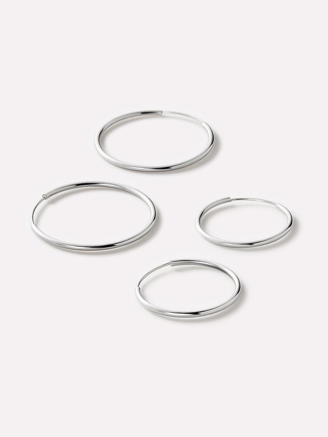 White Gold Hoop Earrings -  White Gold Slim Hoops Set