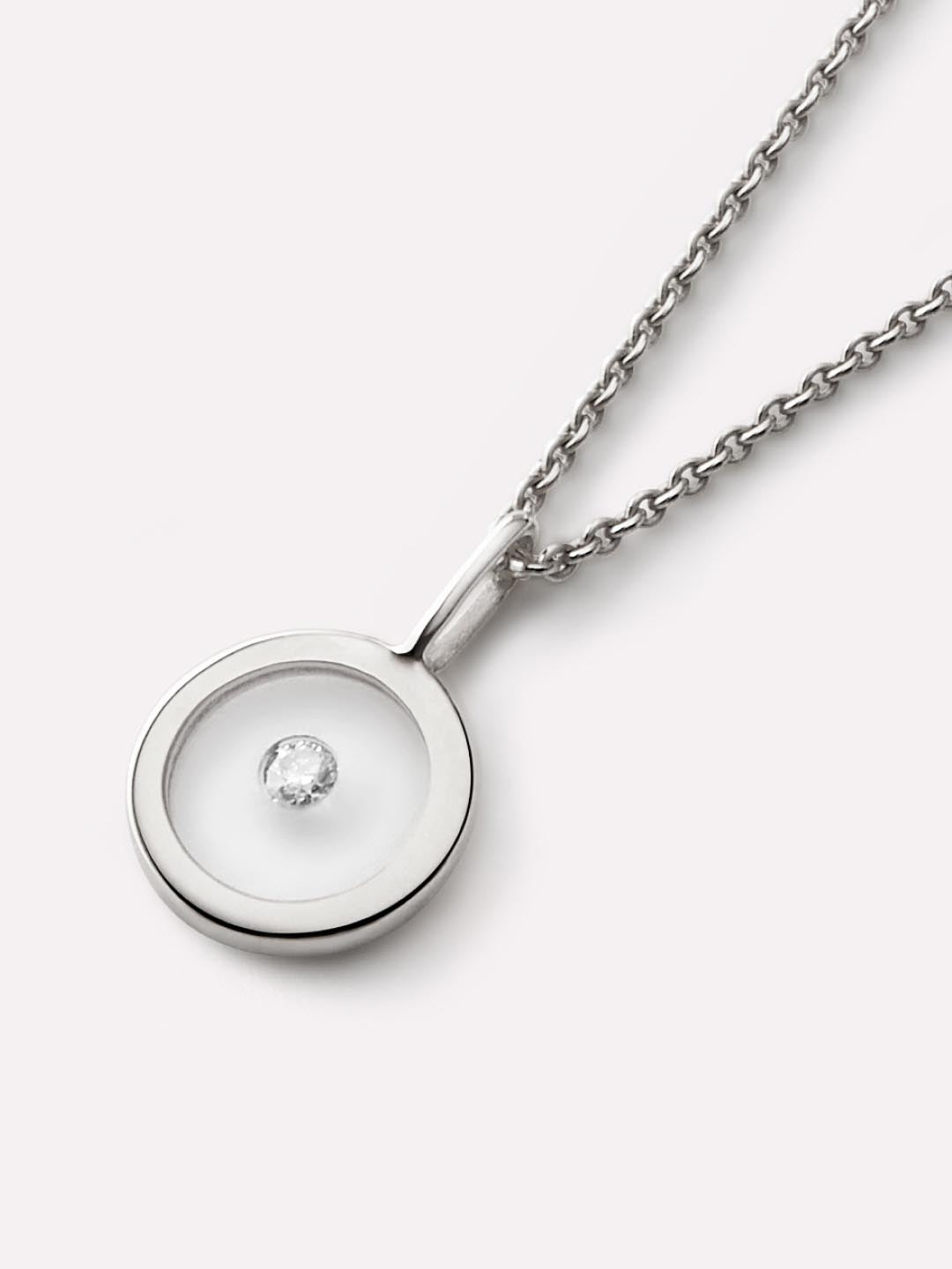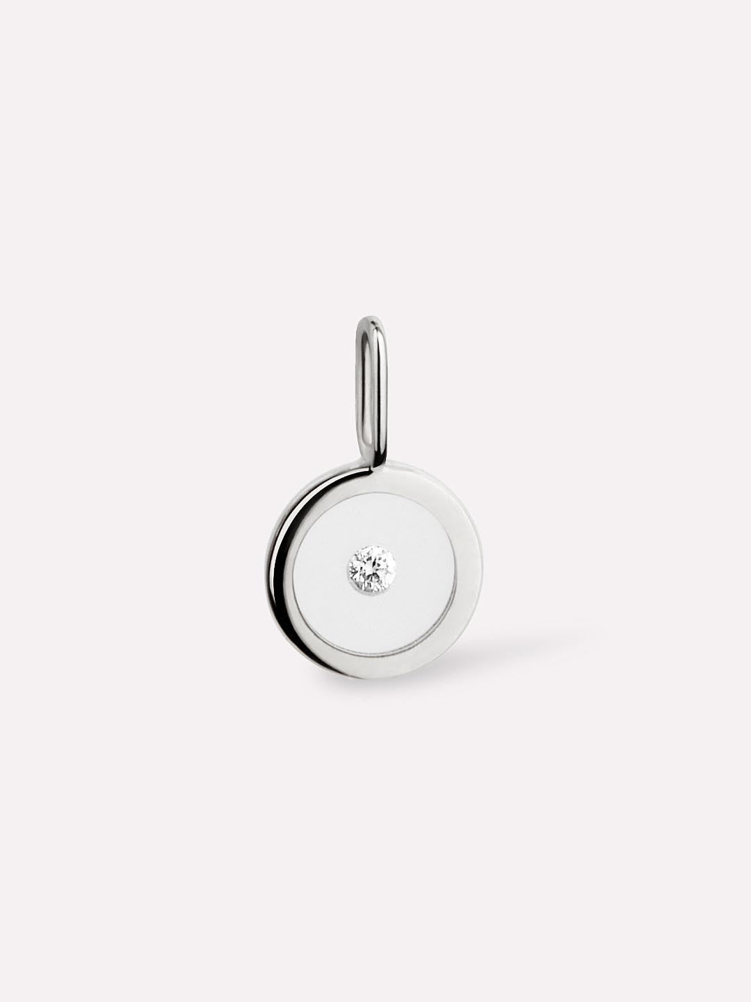 Now featured in a brand new metal, this tarnish-free, white gold pendant is designed to elevate your everyday look. Crafted in waterproof solid white gold, this floating charm features a sparkly, floating lab-grown diamond. Add this charm to our White Gold Chain for the perfect elevated pairing.