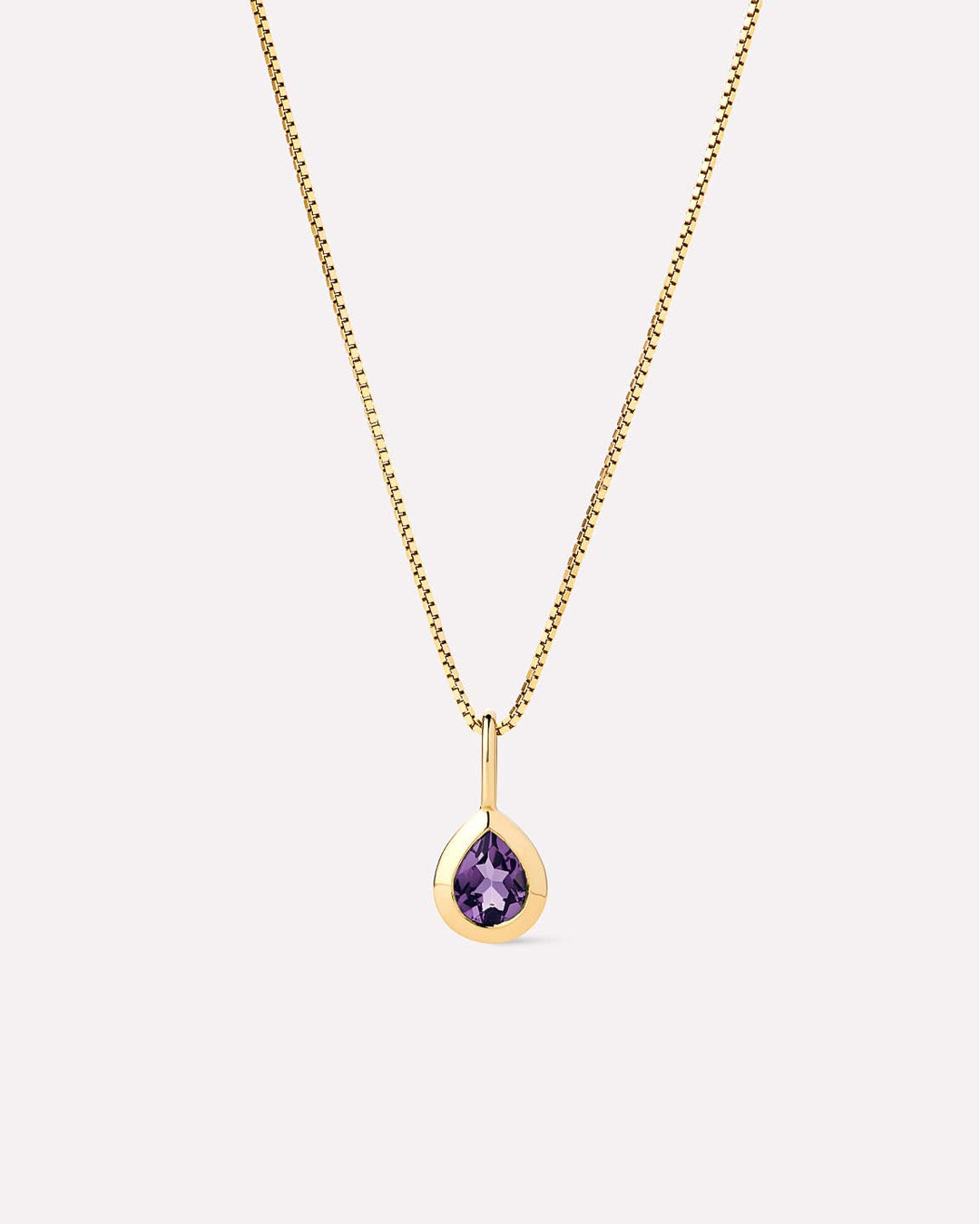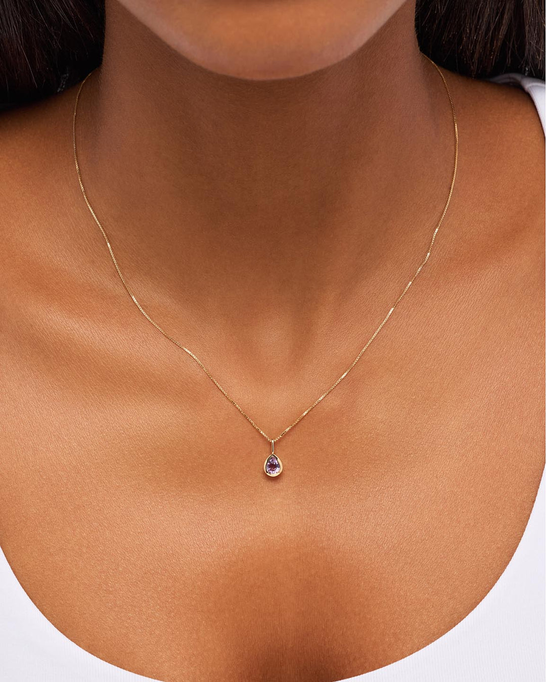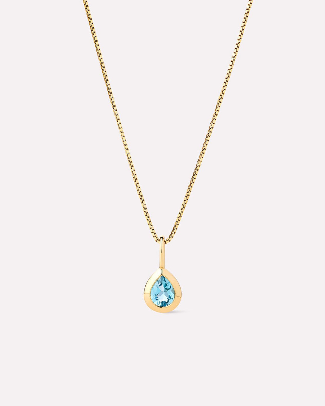 The Teardrop Charm Necklace includes two pieces: Gold Chain - Gold Mini Box Chain & Solid Yellow Gold Birthstone - Teardrop Charm.