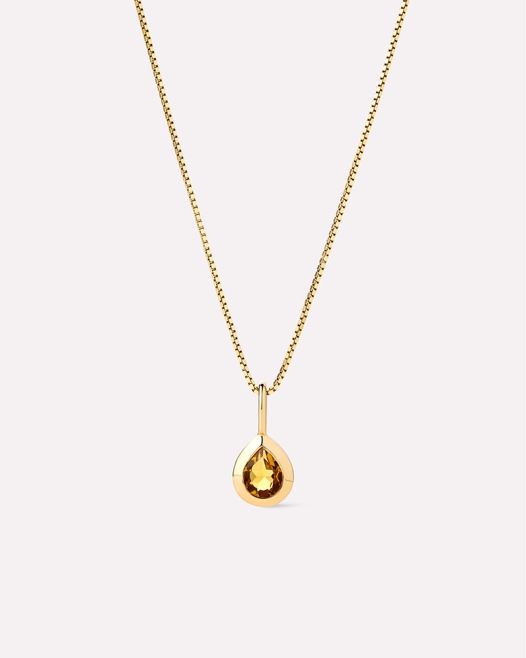 Add both personalization and a pop of color to your stack with this solid yellow gold necklace. Designed for daily wear and crafted in recycled solid gold, this necklace features a sleek box chain and a dainty teardrop charm with a semi-precious stone.