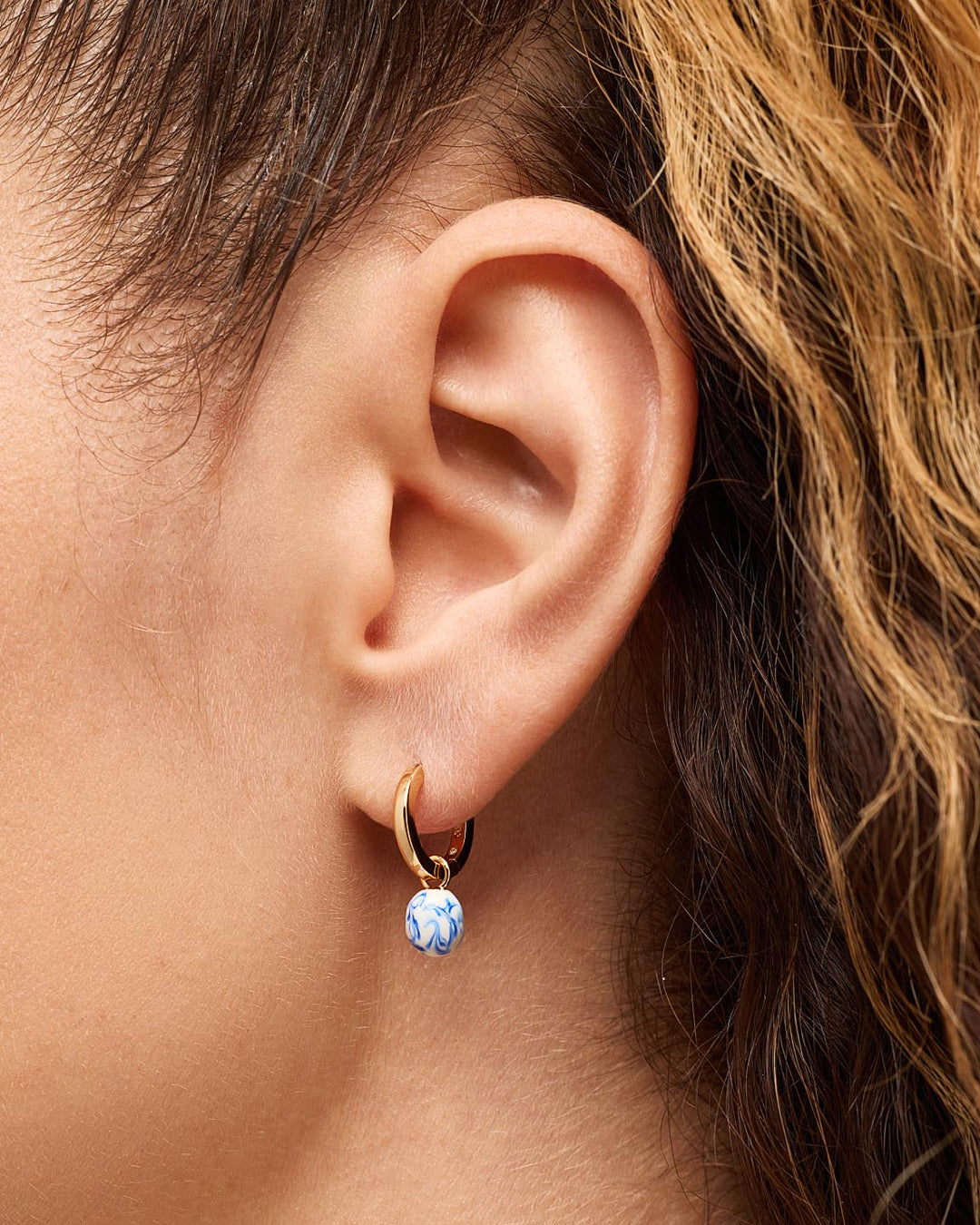 Made to elevate every earring stack, these gold drop earrings add a statement-making finishing touch. Plated in 14k gold with dangling blue marble pendants, these earrings are both bold and beautiful. You can never have enough marble blue, so pair these earrings with our Wrenley Ring for a chic coordinated look.