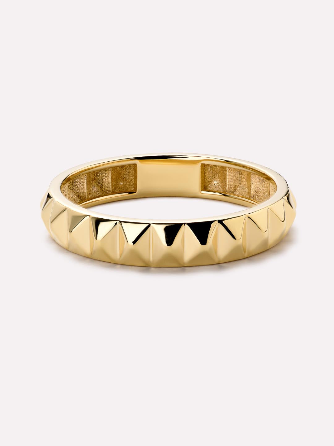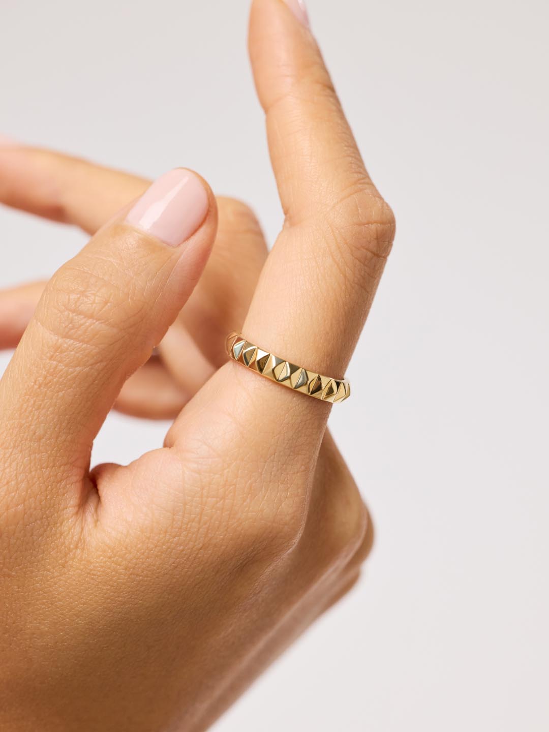 Made to stand out, this solid yellow gold ring is the perfect addition to any statement-making stack. Crafted in solid gold, this ring features a unique textured design and shiny polished finish. This ring is bold on its own but even better styled with our Diamond Station Ring for a touch of sparkle.